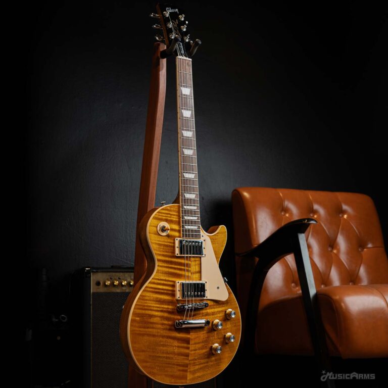 กีต้าร์ที่จะพาคุณย้อนยุคไปสู่ต้นกำเนิดของ Gibson เพราะเอาโมเดลปี 60 มาเป็นต้นแบบซึ่งมีการดัดแปลงเล็กน้อยให้ทันสมัยมากขึ้น บอดี้ไม้มะฮอกกานีคงเอกลักษณืเสียงของ Les Paul ได้เป็นอย่างดี ปะหน้าด้วยไม้เมเปิ้ลเกรด AA เพิ่มมิติเสียง คอมะฮอกกานีแต่ทำทรงคอให้บางขึ้นจับง่ายถนัดมือ ปิ๊กอัพทั้งสองตำแหน่งเป็นรุ่น BurstBucker แต่มีปี 61 กำกับ นั่นแปลว่าซาวด์จะออกมาในลักษณะวินเทจ เล่นได้ทุกแนวเพลง มีความพิเศษที่เพิ่มสวิทช์ Orange Drop Capacitors มาให้ด้วย งานประกอบเนี๊ยบสมราคาแบรนด์ดัง สาวกกีต้าร์วินเทจต้องมีใจสั่นกันบ้าง