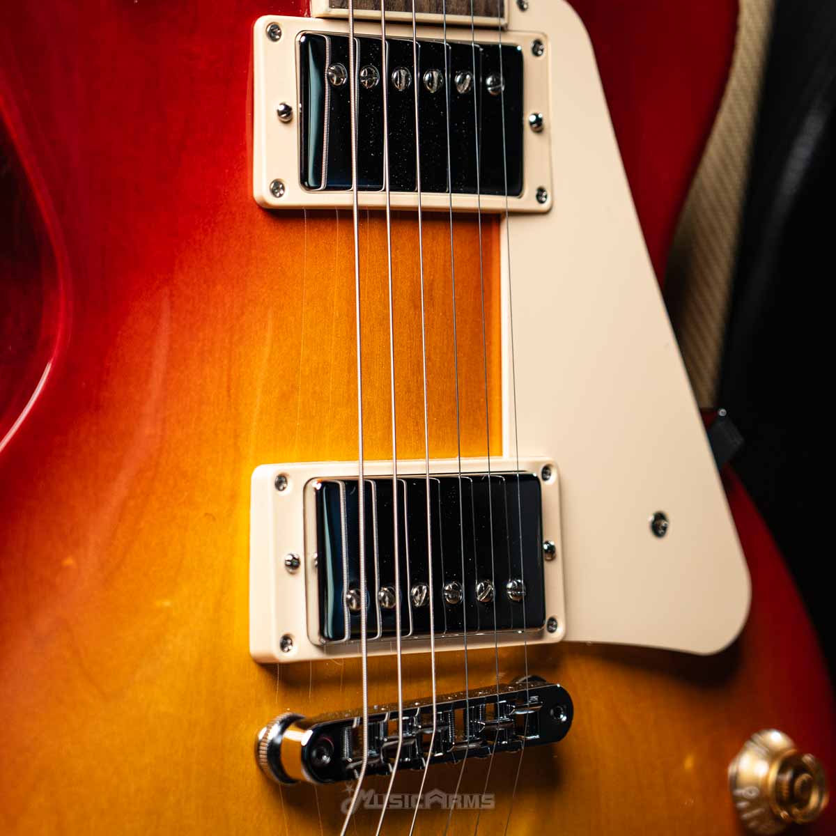 For 2024, the Gibson Les Paul Studio introduces fresh finish and pickguard choices to match your style. Available in striking colors like Blueberry Burst, Ebony, Cherry Sunburst and Wine Red, these finishes enhance the guitar’s classic design with a modern twist. Paired with either a black or cream pickguard (depending on which finish you choose), you can have a Les Paul Studio that really fits your vibe.