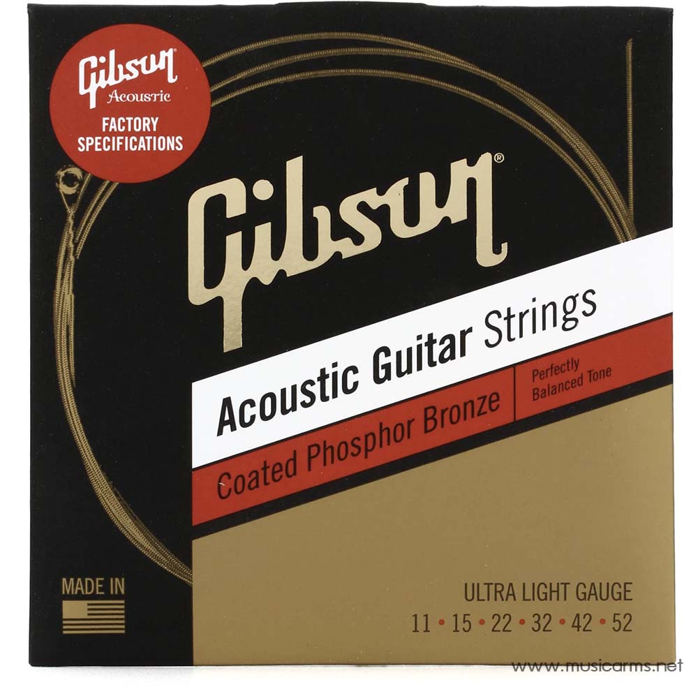 Gibson Coated Phosphor Bronze สายกีตาร์โปร่งที่เข้าถึงรากฐานทางเสียงของ Gibson ทำจากฟอสเฟอร์บรอนซ์พันรอบแกนเหล็กรูปหกเหลี่ยมที่มีคาร์บอนสูง มีความชัดเจนในความถี่สูงและเสียงเบสที่กลมกล่อม เพิ่มการเคลือบโพลีเมอร์ที่เป็นกรรมสิทธิ์ซึ่งเพิ่มอายุสตริงและรักษาโทนเสียงไว้ เพื่อความรู้สึกในการเล่นที่ดีที่สุด