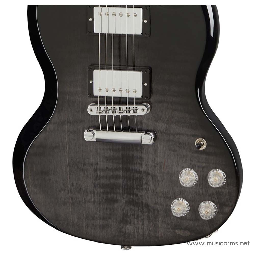 Gibson SG Modern รุ่นใหม่ที่ทำออกมาเอาใจสาวก SG และบอกเลยว่างามสมชื่อความเป็น Modern จริงๆ บอดี้ไม้มะฮอกกานีปะหน้าด้วยไม้เมเปิ้ลเกรด AA สวยงามและมีมิติของเสียง คอมะฮอกกานีฟิงเกอร์บอร์ดอีโบนี่ ได้ซาวด์ของ Gibson เต็มๆ ส่วนปิ๊กอัพนั้นเลือกใช้รุ่น Burstbucker Pro เสียงพุ่งแรงสะใจ เล่นร็อคเนียนๆหรือแนวเพลงอื่นก็ได้ งานดีไซด์ทำออกมาตอบโจทย์คนชอบความทันสมัยอย่างมาก สีสันสวยงามและเชื่อเลยว่าจะเป็นอีกรุ่นที่ขายดีของ Gibson อย่างแน่นอน
