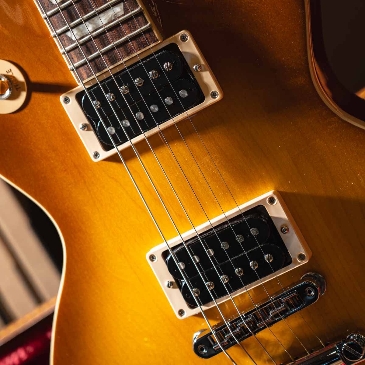 - ปิ๊กอัพ Burstbucker Alnico 2 แบบคู่ของ Gibson ให้พลังงานฮัมบัคกิ้งที่มีเสียงกลางและความชัดเจนเพียงพอ