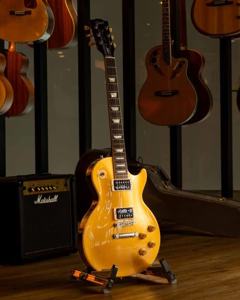 - Goldtop Finish: สีทองด้านบนของกีตาร์ทำให้มีความหรูหราและโดดเด่น