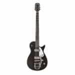 The Gretsch Jet Baritone sports a 29.75″ scale and B-to-B baritone tuning, making it a perfect instrument for laying down the glue between your guitars and basses. Fitted with two Gretsch mini humbucking pickups and 3-way switching, this axe will never be at a loss for new and innovative tones. The Jet Bari sports a fast maple neck with a warm-sounding rosewood fingerboard, and a Bigsby licensed B50 vibrato. If you’re looking to juice your music with new tonal colors, check out the Gretsch Jet Baritone.