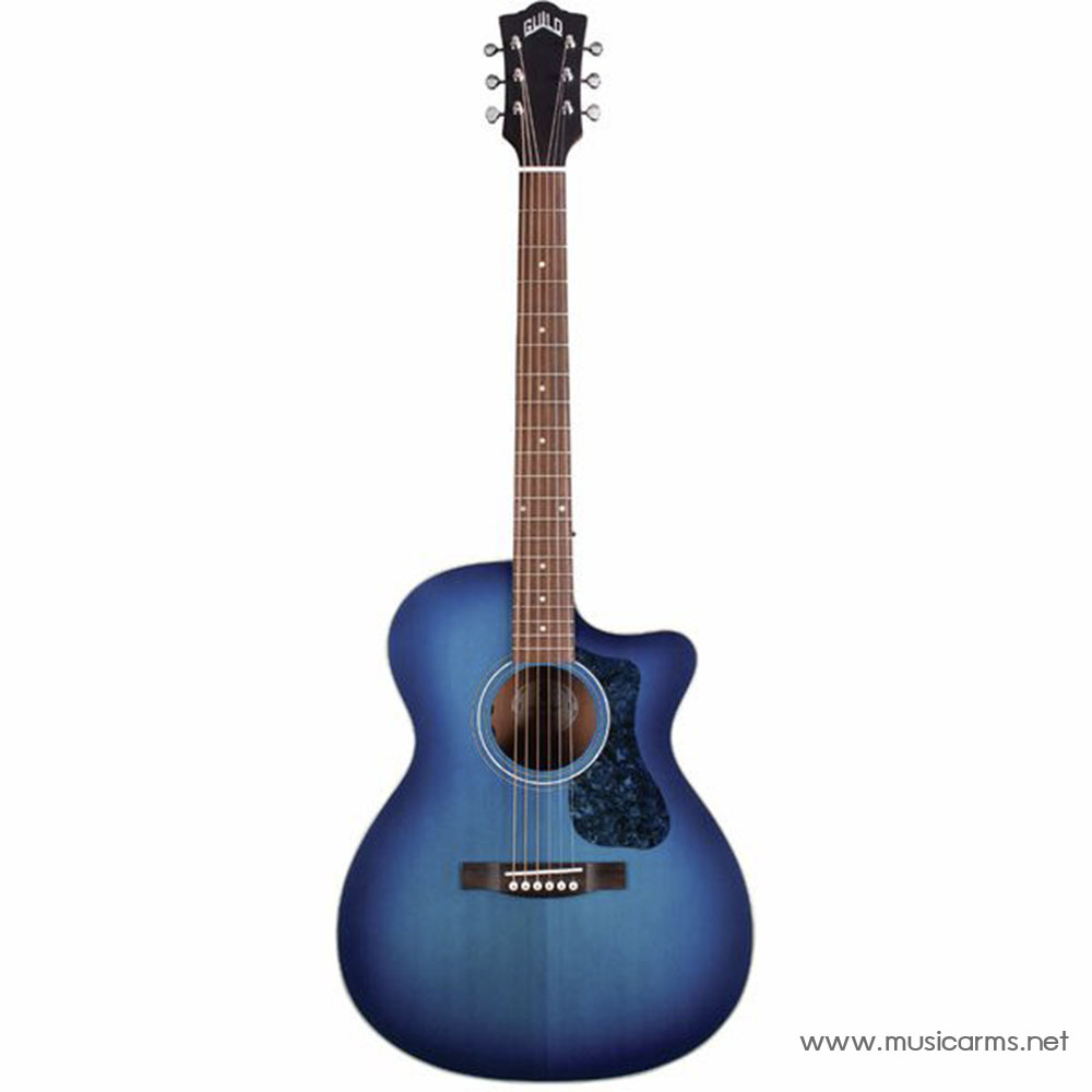 This mid-sized orchestra-shaped acoustic is equally suited for strumming and fingerpicking and produces a sweet, balanced tone. The perfect choice for the versatile musician, the OM-240CE features a solid Sitka spruce top, mahogany sides, and arched mahogany back. Guild’s signature arched back design allows for great volume and projection, long sustain, and a lush, full sound. The OM-240CE in Dark Blue Burst features Guild’s AP-1 pickup, a bone nut and saddle, pearloid rosette, period-correct tortoiseshell pickguard, and a matte polyurethane finish. Also available in Natural and Antique Charcoal Burst.