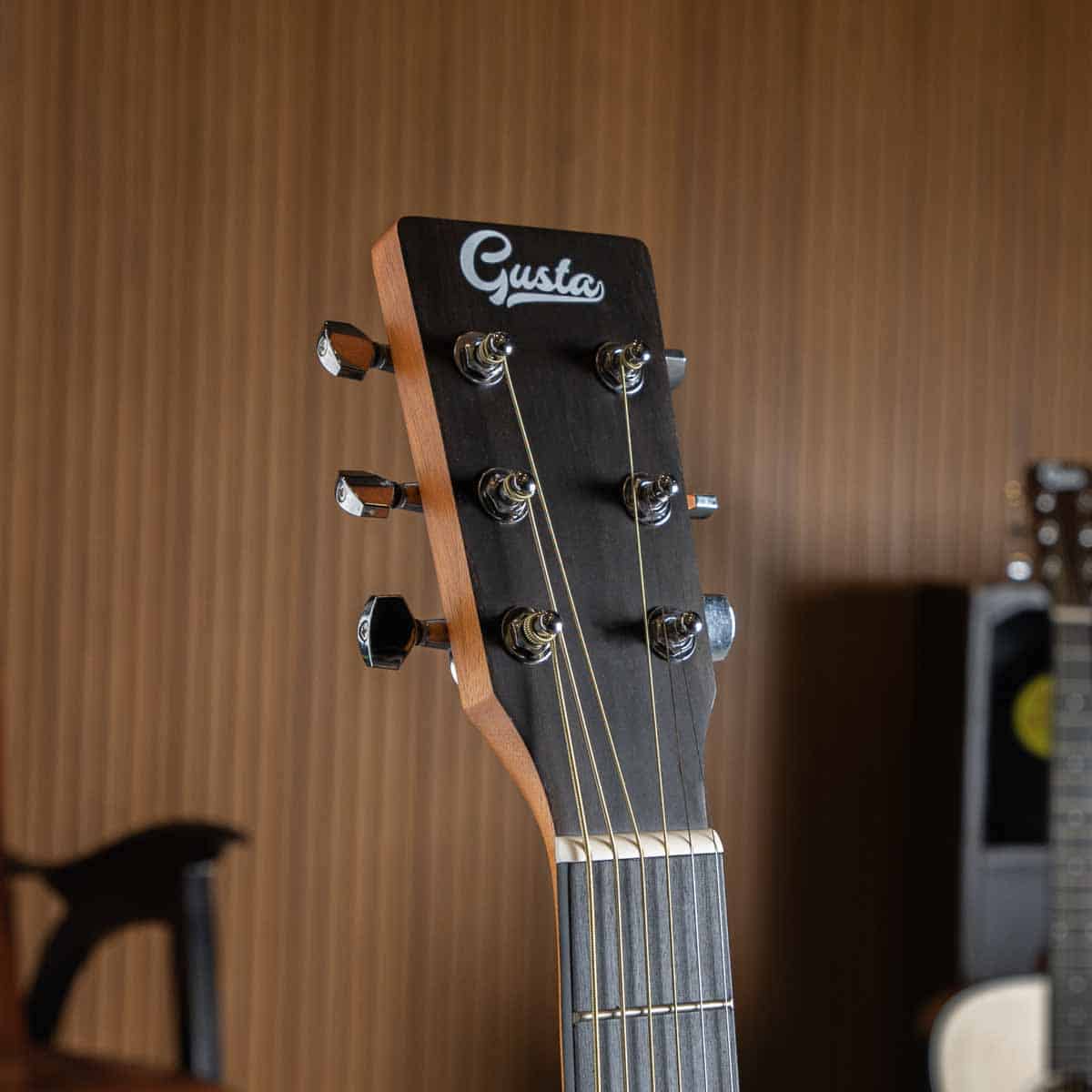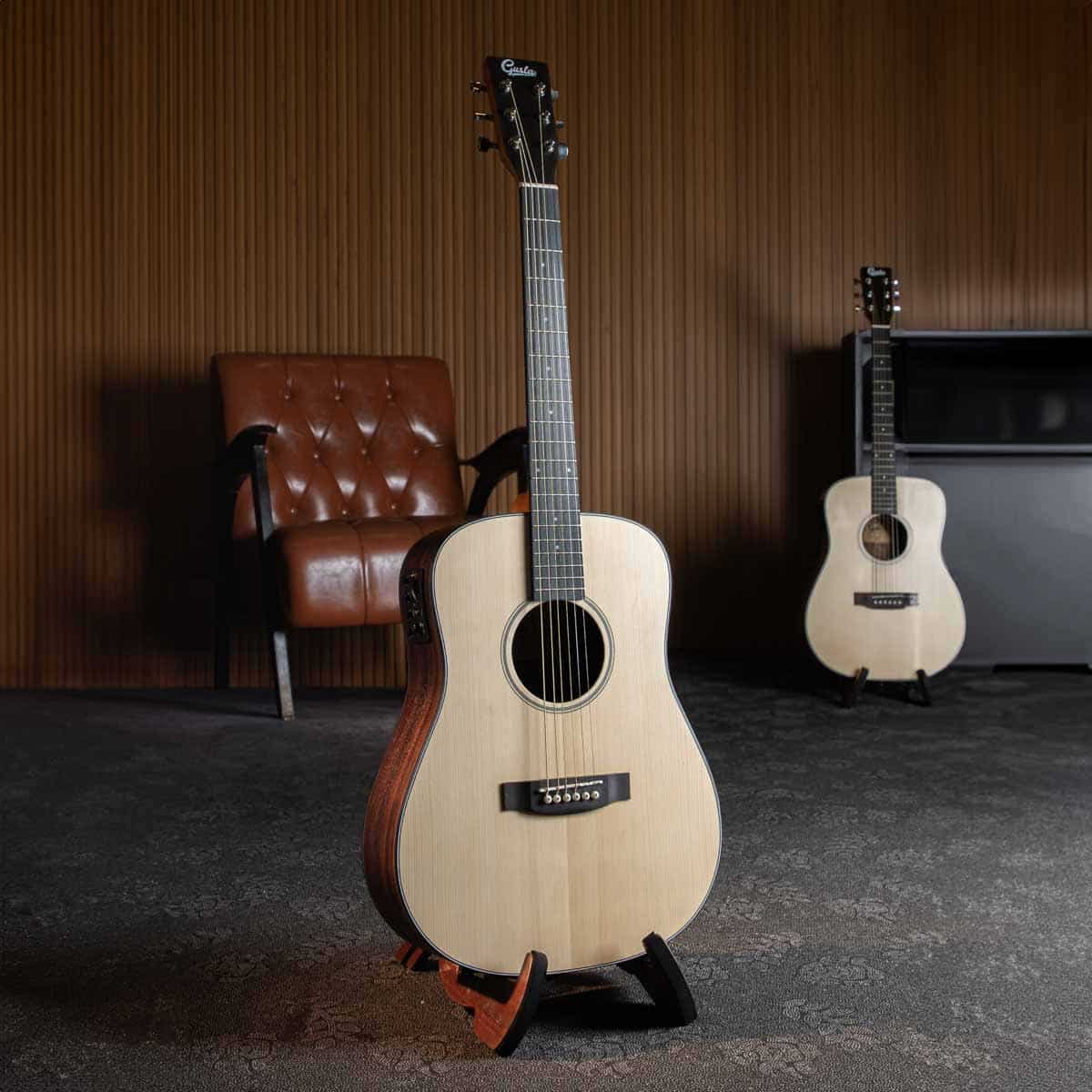 Gusta DJS3-E กีตาร์โปร่งไฟฟ้าตัวท็อปของรุ่น ซึ่งรุ่นนี้จะเหมาะสำหรับคนที่ชอบซาวด์นุ่มๆย่านเสียงเบสดีของไม้โรสวูด โดยจะได้ไม้หน้าเป็นไม้สปรูซที่ให้เสียงกลางดี เสริมด้วยส่วนข้างและหลังเป็นไม้โรสวูดที่หายากและโดดเด่นย่านเสียงเบสหนา ซาวด์ผสมกันได้ลงตัวสามารถเล่นได้ทุกแนวเพลง บอดี้มีขนาดแค่ 38 นิ้วพกพาง่ายในทรง Dreadnought Junior ส่วนคอเป็นไม้มะฮอกกานีและฟิงเกอร์บอร์ดโรสวูด โทนเสียงเต็มอิ่มไม่แพ้กีตาร์ทรงปกติ ใครชอบกีตาร์แบบพกพาราคาย่อมเยา อยากให้มาลองรุ่นนี้เชื่อเลยว่าถูกใจแน่นอน