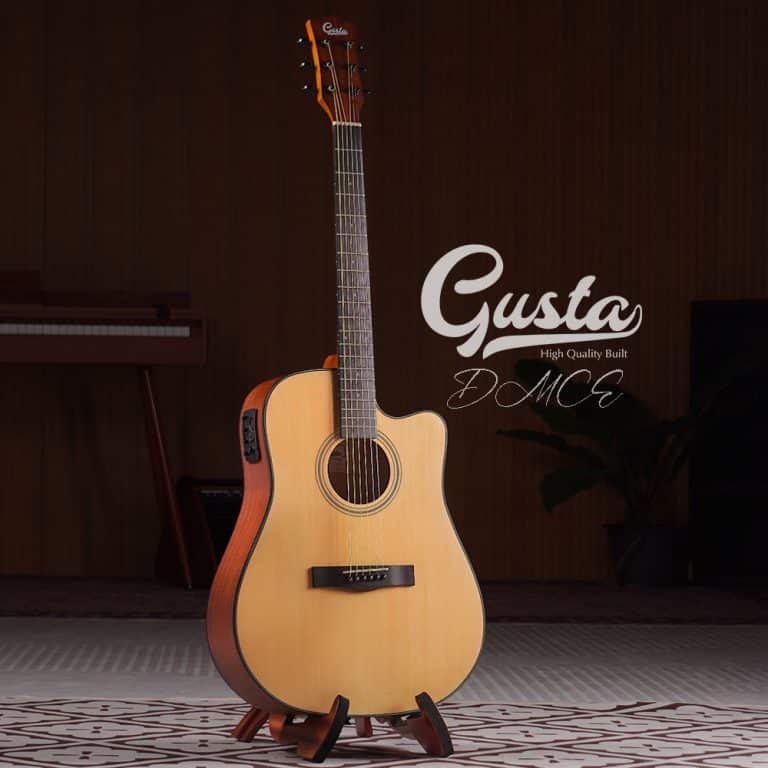 Gusta DMCE II กีต้าร์โปร่งไฟฟ้าที่เหมาะกับผู้เริ่มต้นในราคาประหยัด หรือคนที่มองหากีต้าร์ราคาย่อมเยาใช้งาน รุ่นนี้ไม้หน้าจะเป็นไม้สปรู๊ซ ให้โทนเสียงใส ย่านเสียงกลางดี ด้านข้างและหลังเป็นไม้ซาปีลี ซึ่งเป็นไม้ตระกูลมะฮอกกานีประเภทหนึ่ง เพิ่มมิติเสียงกีต้าร์ให้มีความหนานุ่ม ฟังแล้วอบอุ่น จะตีคอร์ดก็ได้ หรือเล่นฟิงเกอร์สไตล์ก็เหมาะ นอกจากนี้ยังได้ภาคไฟฟ้าของทาง Gusta เอง ซึ่งสามารถปรับ EQ เสียงสูง-ต่ำได้ เป็นปิ๊กอัพรุ่นใหม่ให้เสียงมีมิติและจูนเนอร์แม่นยำขึ้นกว่ารุ่นก่อน ถือเป็นกีต้าร์อีกรุ่นที่ราคาถูกและคุ้มค่าอย่างมาก
