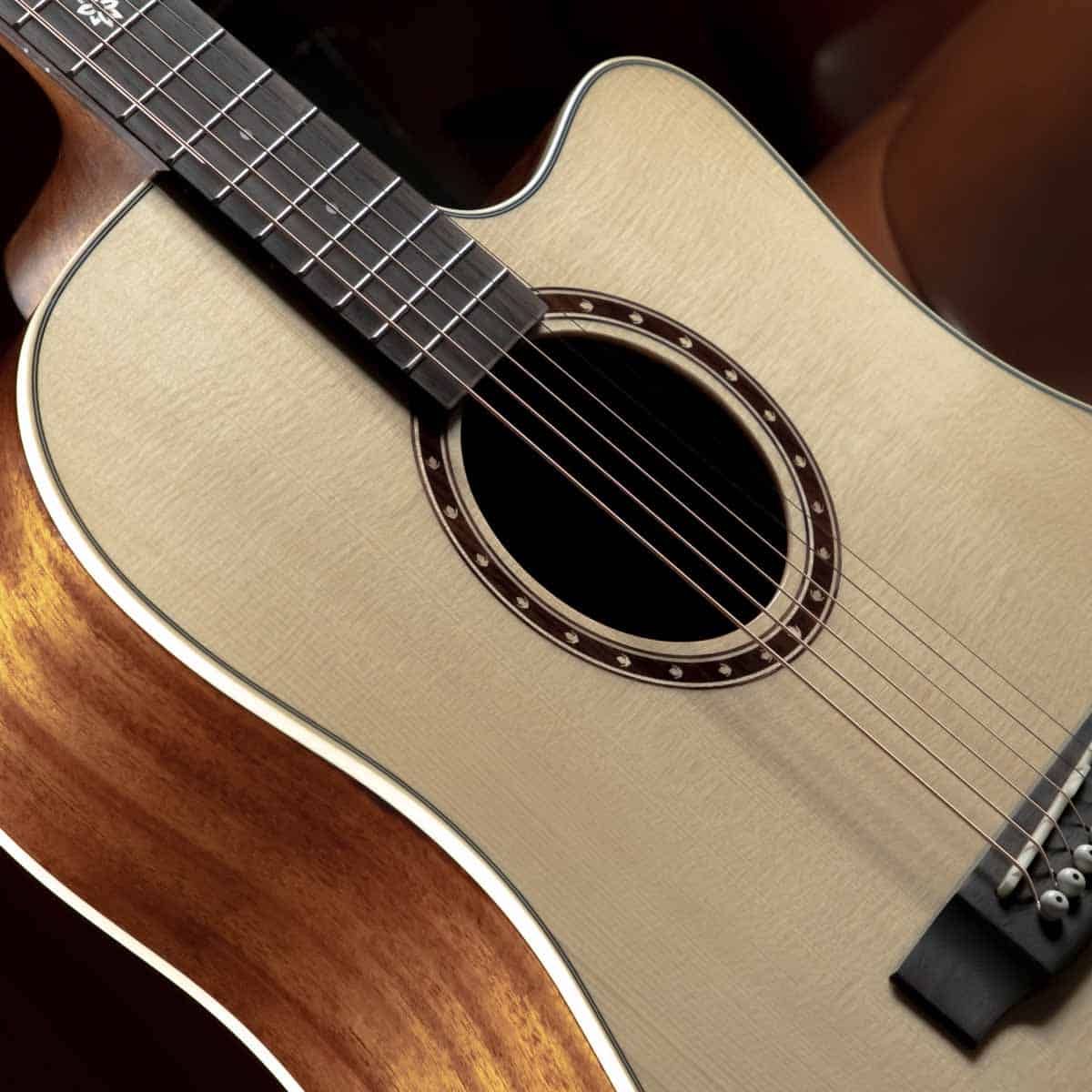 Gusta GD1C กีตาร์โปร่งสำหรับผู้มองหากีตาร์ราคาเบาๆ ซึ่ง G Series ของ Gusta จะตอบโจทย์ได้ครบถ้วนทั้งวัสดุไม้ที่เกินคุ้ม ไม้หน้าเป็นท็อปโซลิดแองเกิลแมนสปรูซที่ให้โทนเสียงใสและย่านกลางชัดเจน ส่วนด้านข้างและด้านหลังเป็นไม้มะฮอกกานีเพิ่มเสียงให้มีความหนาและอบอุ่น คอไม้มะฮอกกานีฟิงเกอร์บอร์ดโรสวูดที่ลงตัว และยังทำไบน์ดิงให้อย่างสวยงามดูหรูหรา งานอะไหล่ก็เลือกมาอย่างดีเช่นนัทและแซดเดิลที่ทำจากกระดูก คุณภาพเสียงเกินราคาเป็นอีกรุ่นจาก Gusta ที่น่าจับจองอย่างมาก