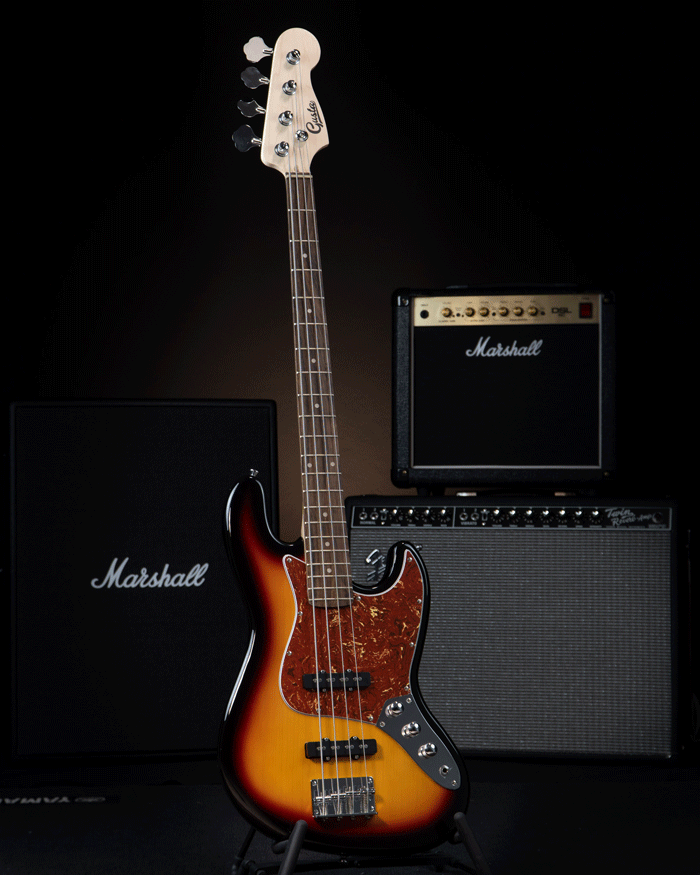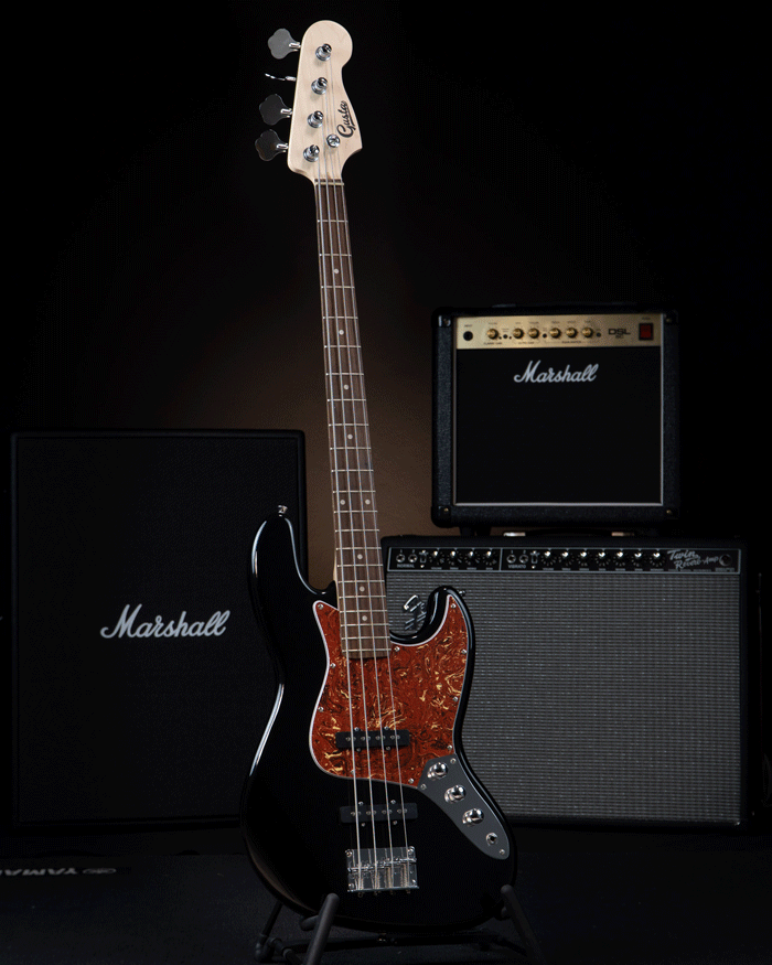 Gusta GJB4-01 เบส 4 สายราคาย่อมเยาจากแบรนด์ที่ขึ้นชื่อในเรื่องคุณภาพอย่าง Gusta งานประกอบถือว่าทำออกมาได้เนี๊ยบเกินราคา โดยเฉพาะเรื่องเสียงที่เป็นจุดขายของค่ายนี้ บอดี้นั้นทำจากไม้เบสวู้ด เสียงแน่นๆ คอไม้เมเปิ้ลช่วยเพิ่มย่านเสียงกลางและความใสให้กับเนื้องเสียง ฟิงเกอร์บอร์ดโรสวู้ด ตัวปิ๊กอัพที่ให้มานั้นเป็นแบบซิงเกิ้ลคอยล์ 2 ตำแหน่ง ซาวด์ตอบโจทย์ดนตรีทุกแนวเพลง อะไหล่สุดคุ้ม ใครที่กำลังหาเบสราคาประหยัดไว้ใช้งาน ถือว่าตอบโจทย์อย่างมาก