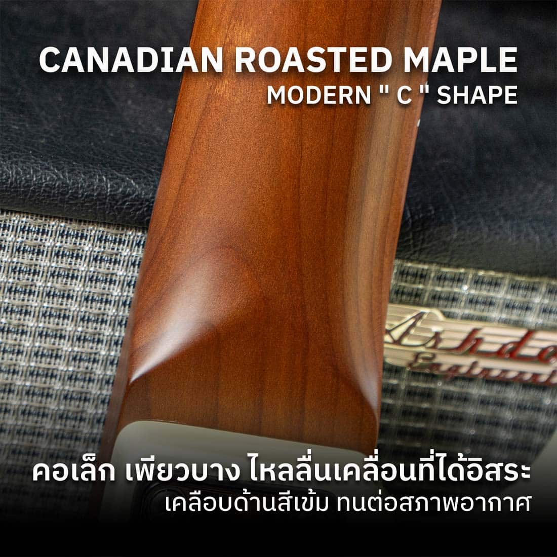 คอทำจาก Canadian Roaster Maple ที่ผ่านการอบในอุณมิสูง รีดความชิ้นออกจากเนื้อไม้ ได้ความเเข็งเเรงทนทานต่อสภาพอากาศ เเละคาเเรคเตอร์เหมือนไม้เก่า มาในรูปทรง Modern ” C ” Shape คอเล็ก เพียวบาง ทำให้ผู้เล่นมือใหม่ ๆ เมื่อใช้ไปหัดเล่นก็ เล่นง่าย หรือมือเบสที่ชอบคอเล็ก ๆ ก็เล่นได้พริ้ว คล่องแคล่ว ว่องไว