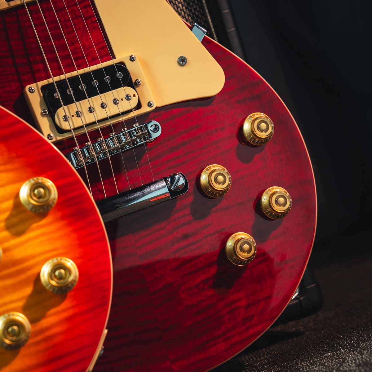 - การเคลือบเงา (Gloss Finish): ทำให้กีตาร์ดูหรูหรา มาพร้อมสี Wine Red Cherry Burst ที่ให้ความรู้สึกคลาสสิกและสวยงาม