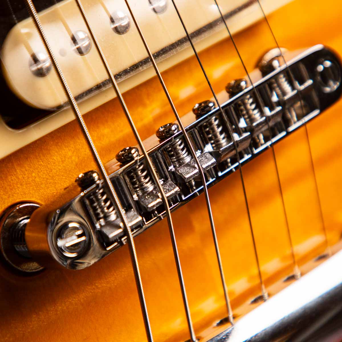 - บริดจ์ Tune-O-Matic: ให้ความเสถียรในการตั้งสายและความแม่นยำของอินโทเนชัน (Intonation)