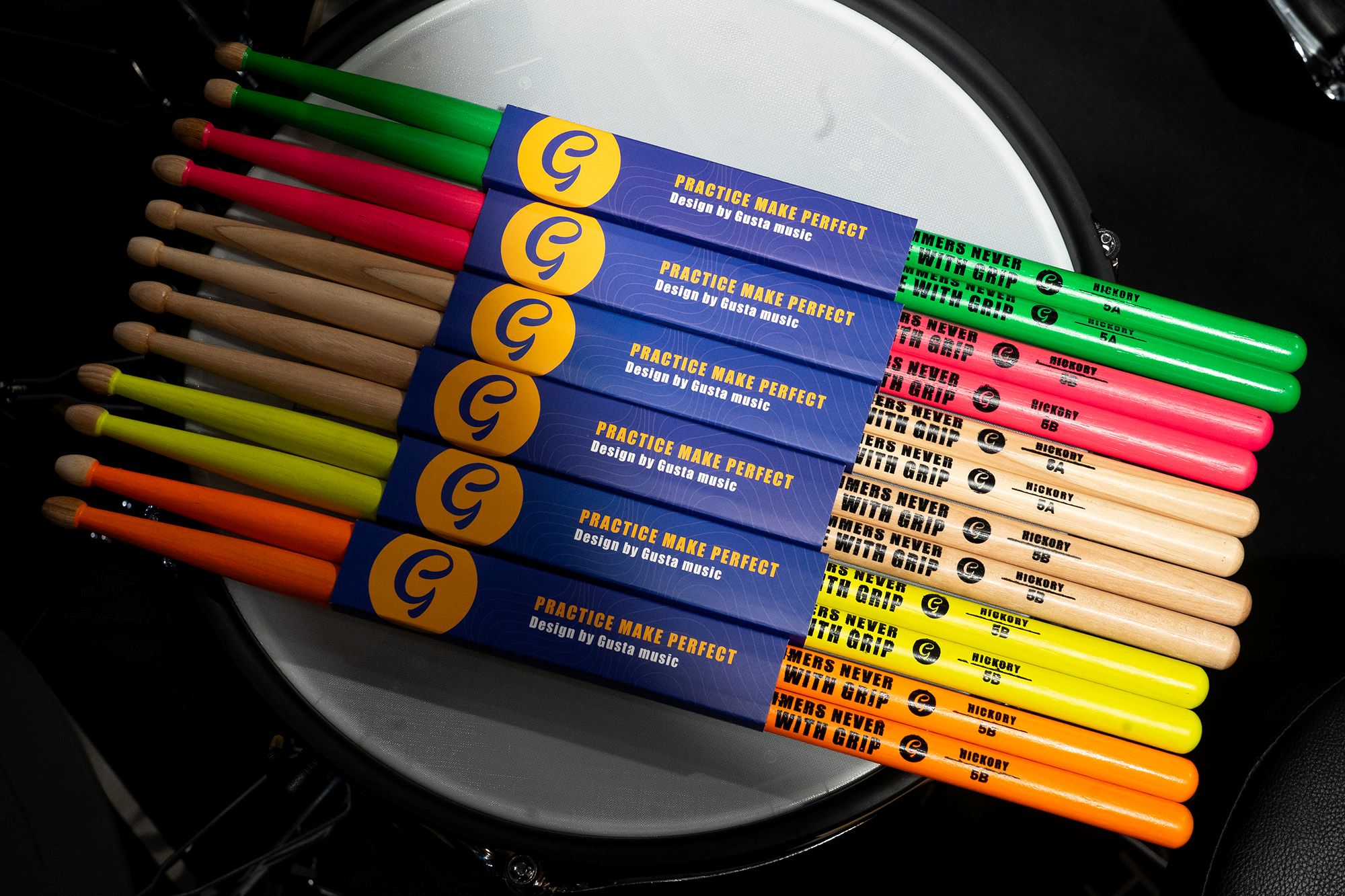 Gusta Grip: ไม้กลองพรีเมียมฮิคกอรี่ ดีไซน์ Neon Glow เติมเต็มพลังแสงบนเวที