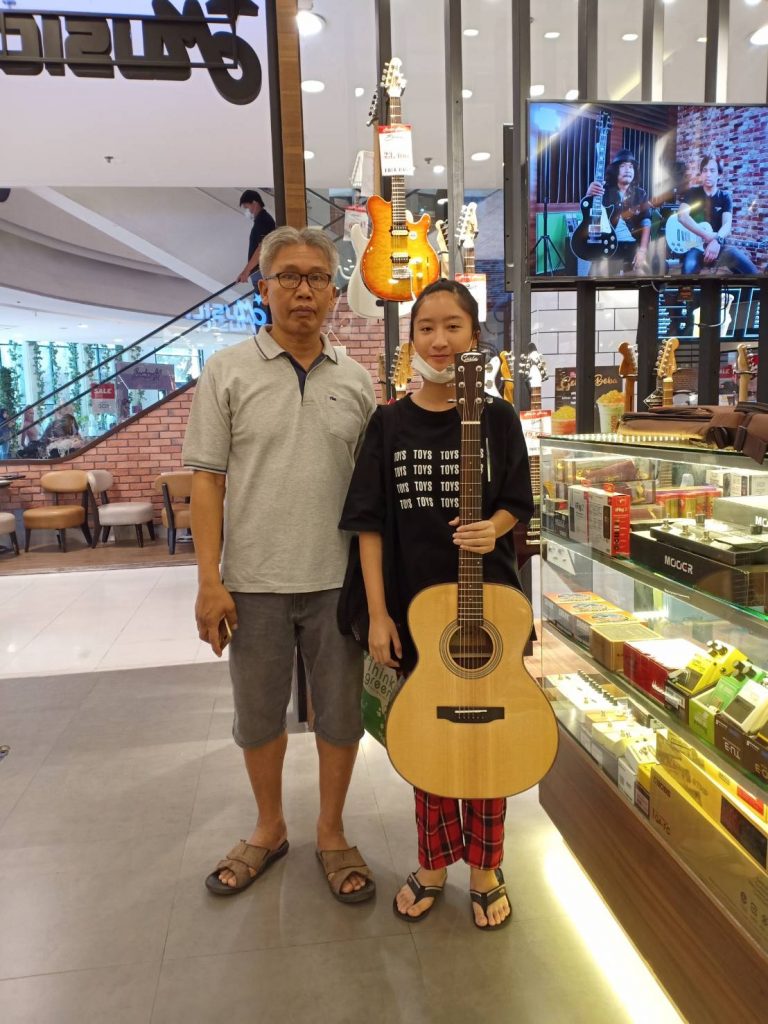 Gusta GS130-N กีต้าร์โปร่งทรง OM เล่นง่ายเหมาะสำหรับผู้หญิงและเด็ก หรือว่าลูกค้าที่กำลังมองหากีต้าร์ที่ตัวไม่ใหญ่หรือไม่เล็กจนเกินไป แต่ได้เสียงที่กังวาน ขอบอกว่าราคาเท่านี้แต่ได้ไม้หน้าเป็นท็อปโซลิดหรือไม้แท้แผ่นเดียว เป็นไม้ซิทก้าสปรู๊ซที่ให้โทนเสียงใส ย่านเสียงแหลมดี บอดี้ส่วนอื่นเป็นไม้โรสวู้ด ซึ่งเป็นไม้ที่ให้เสียงหนานุ่ม เพิ่มมิติเสียงให้มีความหนาขึ้น บอดี้เคลือบเงาสวยงาม ป้องกันฝุ่นละออง กับราคาเบาๆแบบนี้ถ้าได้มาลองเสียงรับรองว่าจะแปลกใจในคุณภาพ คุณภาพเสียงออกงานสบาย รูปทรงสวยหรู