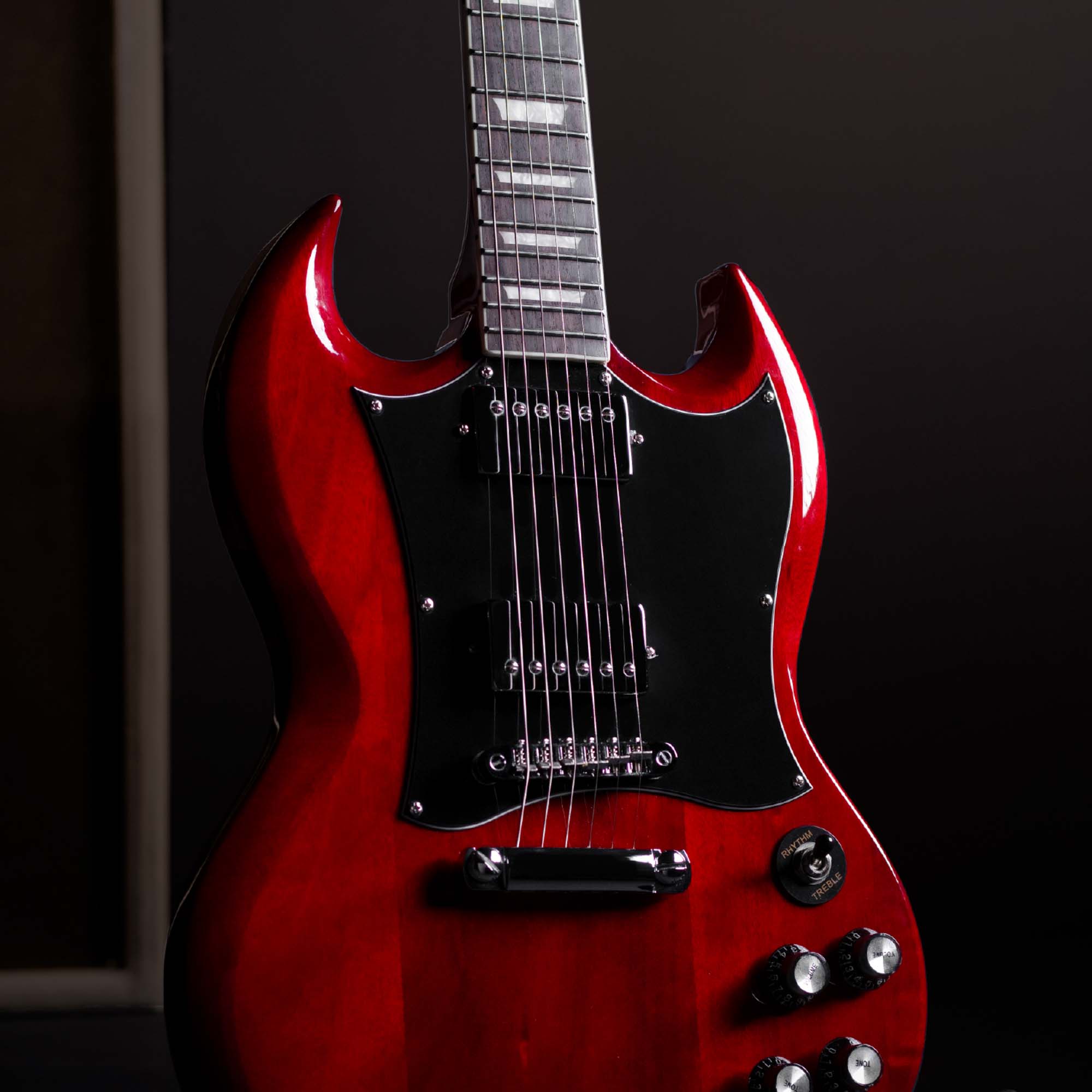 Gusta GSG Standard กีตาร์ไฟฟ้าทรง SG ยอดนิยมที่มาในสเปคสุดคุ้ม บอดี้เป็นไม้มะฮอกกานีให้โทนเสียงแน่นๆ ซาวด์หนาอบอุ่น คอไม้มะฮอกกานีทรง C จับเข้ากับรูปมือได้ดี ฟิงเกอร์บอร์ดโรสวูด งานอะไหล่คัดสรรกันมาอย่างดี เช่นนัททำจากกระดูก หรือตัวบริดจ์ Tune-O-Matic ขุมพลังเสียงเป็นปิ๊กอัพ H.H. Alnico 2 ตำแหน่ง ปุ่มควบคุมทั้ง Volume และ Tone ควบคุมแต่ละปิ๊กอัพ และยังสามารถ Split Coil ได้ ดีไซน์ออกมาสวยงามลงตัวในทุกจุด ใครที่ชอบทรง SG กีตาร์งานดีราคาย่อมเยารุ่นนี้เป็นตัวเลือกที่ยอดเยี่ยม