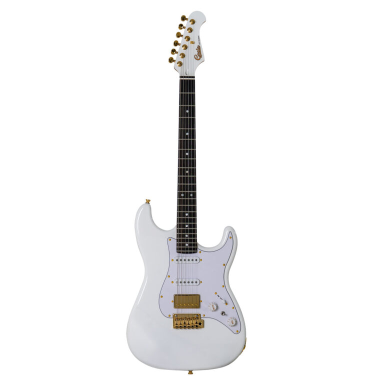 The Gusta GST White Edition is an electric guitar brimming with style and versatility, designed to deliver an exceptional playing experience. With its beautiful Arctic White finish and premium gold hardware, this guitar is visually stunning and stands out in both appearance and performance.