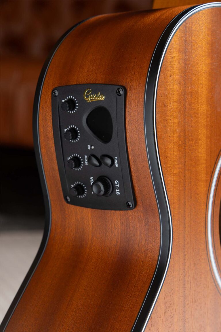 - ภาคไฟฟ้า Gusta พร้อมจูนเนอร์ในตัว: ติดตั้งภาคไฟฟ้าของ Gusta ที่ให้เสียงเป็นธรรมชาติ นุ่มนวลและคมชัด สามารถปรับ EQ ได้ 2 ย่าน (เสียงเบสและเสียงแหลม) และมีเครื่องตั้งสายในตัวที่สะดวกสำหรับมือใหม่