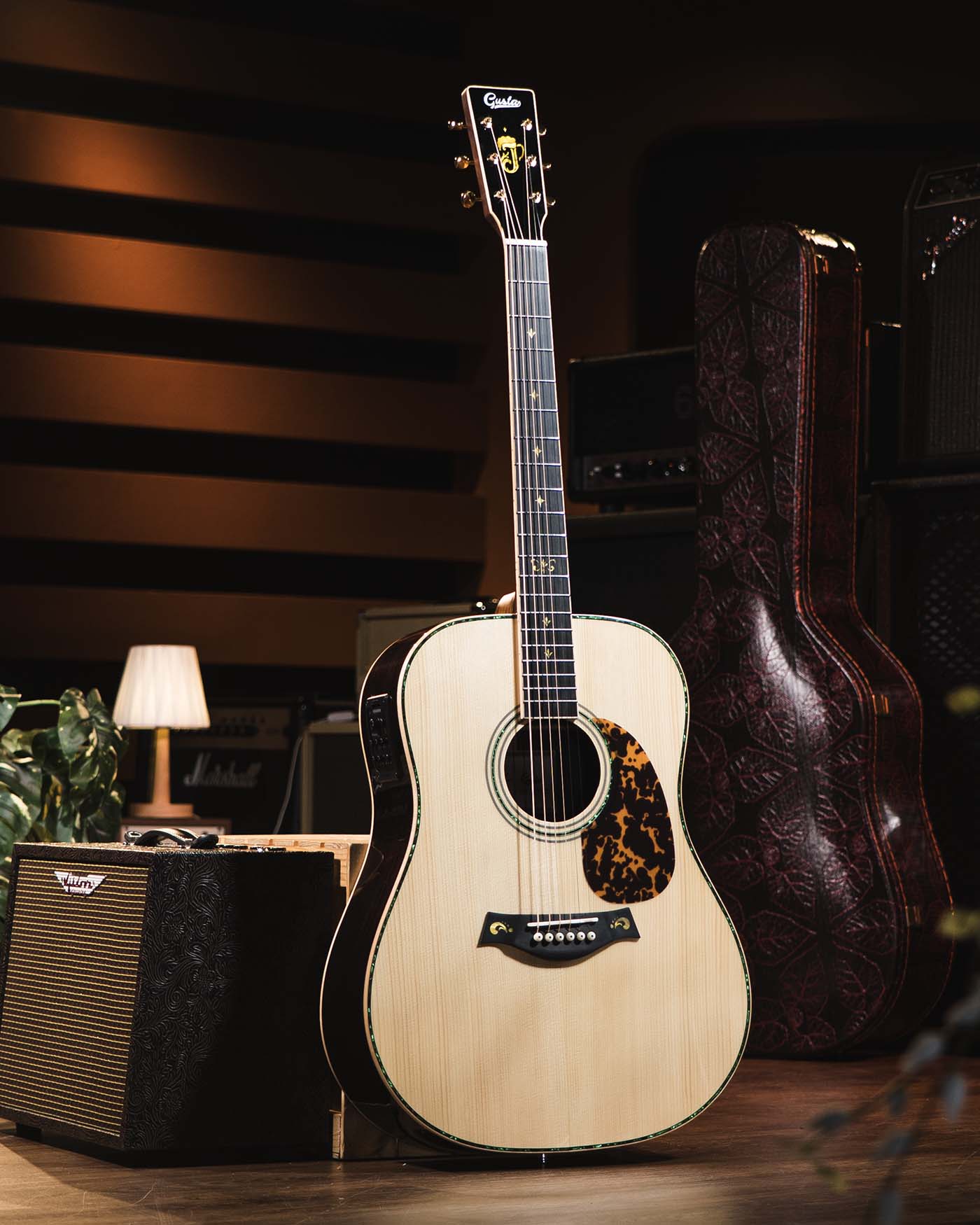The Gusta RIN JUGG SIGNATURE is a Dreadnought acoustic guitar meticulously crafted to meet the needs of musicians who demand both a ‘dependable sound’ and a ‘familiar feel’ from a single instrument. This guitar is engineered to become an integral part of your significant musical moments, whether you are recording in a studio, performing live on stage, or engaging in personal creative sessions. By selecting premium tonewoods and incorporating the intricate, dedicated design by the signature artist (Jugg), the Gusta RIN JUGG SIGNATURE transcends the definition of a mere instrument—it is a powerful tool designed to elevate the emotional depth and sonic energy of your musical expression to an exceptional level.