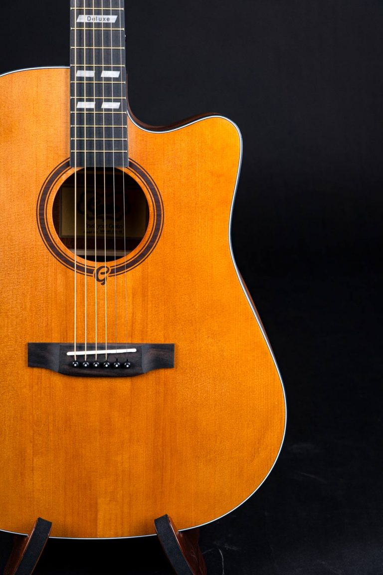 Gusta SDM-Deluxe อีกรุ่นที่ผลิตออกมาตอบโจทย์ทั้งมือใหม่และมืออาชีพในราคาย่อมเยา รุ่นนี้มาในทรงเดรทน็อตโดยจะได้ไม้หน้าเป็นท็อปโซลิดหรือไม้แท้แผ่นเดียว เป็นไม้ซิทกาสปรูซที่ให้เสียงโทนใสและเสียงกลางเด่นชัด ยิ่งนานไปไม้แห้งเสียงจะหวานละมุนมากขึ้น ด้านข้างและด้านหลังเป็นไม้มะฮอกกานีเสริมมิติเสียงให้มีความหนามากขึ้น คอไม้มะฮอกกานี งานประกอบทำออกมาได้ยอดเยี่ยม อะไหล่ดีเช่นนัทและแซดเดิลทำจากกระดูก และให้สาย Phosphor Bronze มาด้วย ตกแต่งด้วยไบน์ดิงสวยงาม คุ้มค่าแบบนี้ใครที่หากีตาร์ไม้หน้าแท้เสียงดีๆต้องไม่พลาด