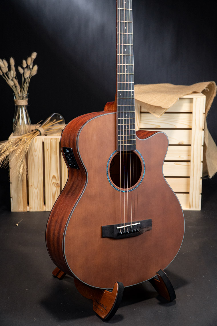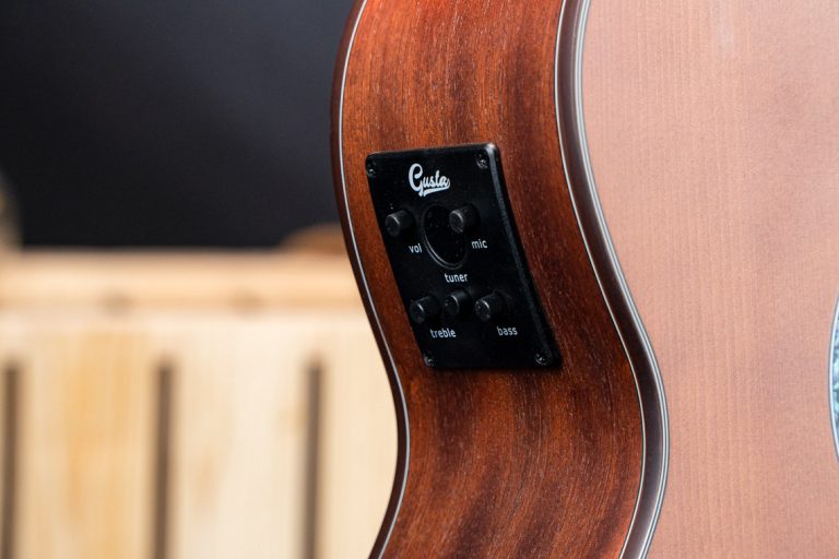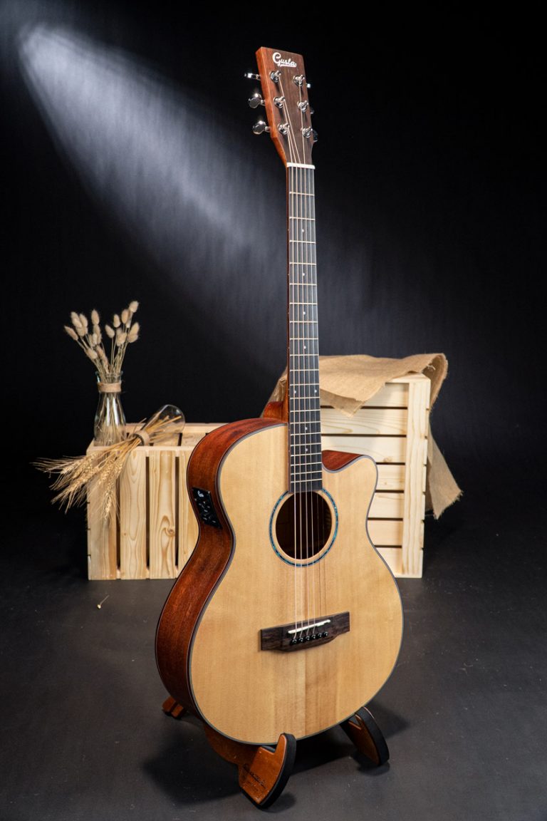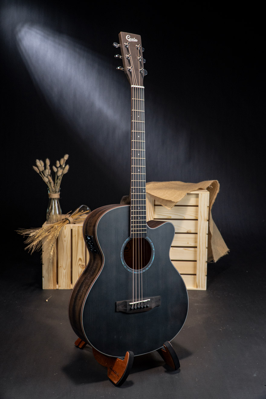Gusta SGA-SPE กีตาร์โปร่งไฟฟ้าไม้หน้าแท้ในทรงแกรนด์ออดิทอเรียมซึ่งมีขนาดที่เล็กกว่าเดรทน็อตเล็กน้อย จึงเหมาะสำหรับผู้หญิงหรือคนตัวเล็ก และให้เสียงที่กังวานไม่แพ้กัน ไม้หน้าท็อปโซลิดซิทกาสปรูซเสียงกลางชัดเจน ยิ่งนานไปไม้แห้งเสียงจะหวานขึ้น ด้านข้างและด้านหลังเป็นไม้มะฮอกกานีเสริมมิติเสียง คอไม้มะฮอกกานีฟิงเกอร์บอร์ดโรสวูด มีขอบไบน์ดิ้งมาให้สวยงาม ดีไซน์สวยงาม อะไหล่เยี่ยม มาพร้อมภาคไฟฟ้า Gusta GTS ที่ให้เสียงละมุน ซาวด์อะคูสติกใส ใครที่ชอบกีตาร์ทรงแกรนด์ นี่เป็นอีกรุ่นที่น่าสนใจไม่น้อย
