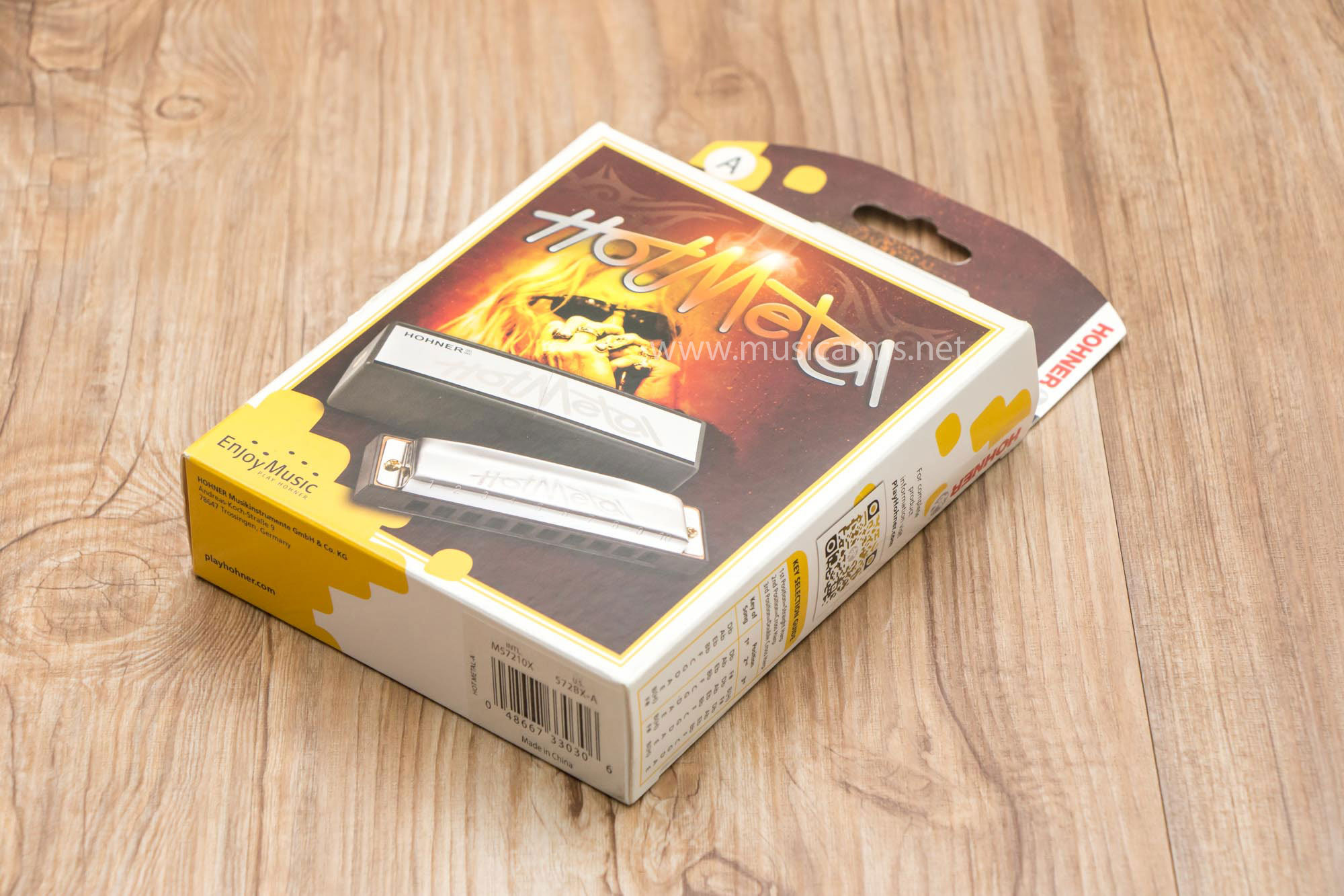 Hohner Hot Metal Harmonica หรือที่เรียกกันว่าฮาร์โมนิก้า เป็นเครื่องดนตรีประเภทเป่า รุ่นนี้จะมีจำนวน 10 ช่องเสียง บอดี้ทำจากสแตนเลสอย่างดี โดยผิวหน้าช่องเป่าทำจากไม้อย่างดี ให้โทนเสียงใส กังวาน รุ่นนี้จะมีการปรับปรุงลิ้น และช่องภายใน ให้ซาวด์ออกมาในแนวร็อคมากขึ้น เหมาะสำหรับเป็นเครื่องดนตรีพื้นฐานในทุกๆระดับ