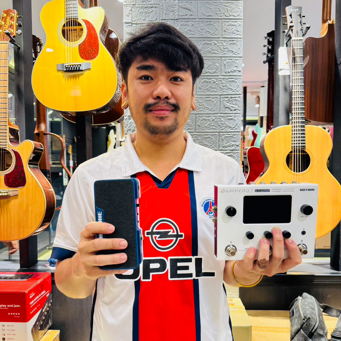 In 2022, Cory discovered the multi-functional Soul Press II pedal from Hotone and instantly fell in love. Since then, it has become his go-to pedal for live performances.