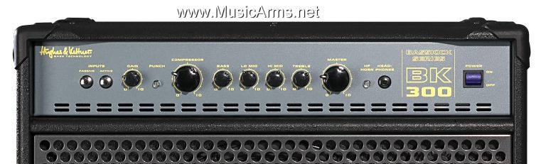 Hughes & Kettner BK 300 Bass Combo – แอมป์เบสที่มาพร้อมกำลังขับ 300 W ด้วยดอกลำโพง 15″ ด้านนอกเป็นตะแกรงเหล็กหุ้มอย่างดี แข็งแรง ได้เพิ่มความโมเดิรน์ทันสมัยเช่น effects loop, headphone jack, a 4-band PureParallel EQ และสวิตซ์ปรับความถี่สูงสุด มี PureParallel EQ ที่ควบคุมรดับ สูง ต่ำ หรือกลาง วงจรออกแบบมาตัดเสียง noise สัญญาณรบกวน แอมป์เบสมีขนาดใหญ่และมีประสิทธิภาพ สามารถสร้างผลงานให้คุณได้ดั่งใจแน่นอน