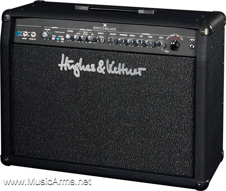 Hughes & Kettner Switchblade 100 combo – มีคำสั่งทั้งหมด สี่ channel ที่จะนำเสียงคลาสสิคออกมาเต็มรูปแบบที่ปลายนิ้วคุณ. คุณจะรุ้สึกกระดูกสันหลังเสียวซ่านไปกับ clean และ crunch ไปถึง singing lead และ crushing ,saturated sound. กำลังขับ 100 w มาพร้อมด้วย 2 – 12″ Eminence Rockdriver 60 speakers.