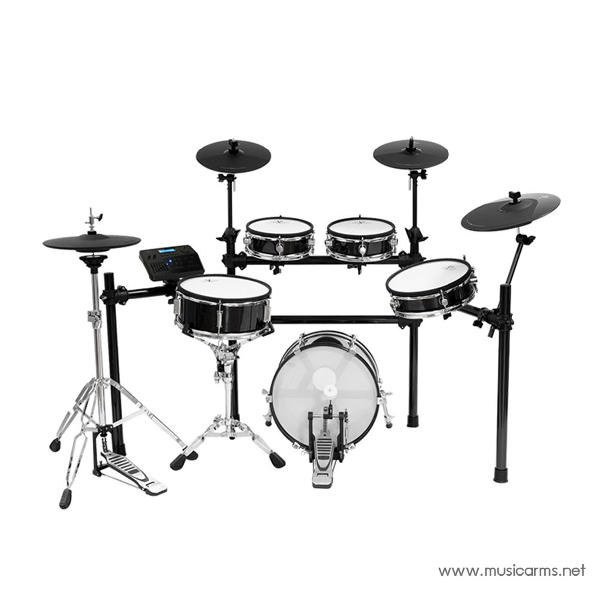 - แป้นกลองขนาดใหญ่พร้อมการตอบสนองหลายโซน: แป้นสแนร์ขนาด 13 นิ้ว เป็นแบบ 3 โซน (Triple Zone) ที่รองรับการตีบริเวณหนัง, ขอบ และ Rimshot ได้อย่างครบถ้วน ในขณะที่กลองทอมแบบ 2 โซน (Dual Zone) และกลองเบสขนาดใหญ่ 16 นิ้ว ที่รองรับการใช้งานกระเดื่องคู่ ก็ช่วยให้คุณสร้างสรรค์จังหวะได้อย่างไร้ขีดจำกัด