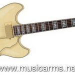 The Ibanez AS103 Artcore Guitar offers semi-hollow sustain, power, and feedback resistance. Flamed maple on the top back and sides provides beauty and clear tone. A 5-piece Artcore custom set-in neck increases sustain and strength. Two Ibanez Custom 58 pickups have a full, versatile output great for rhythm and lead. Artcore Custom inlays and gold hardware complete the elegant package.