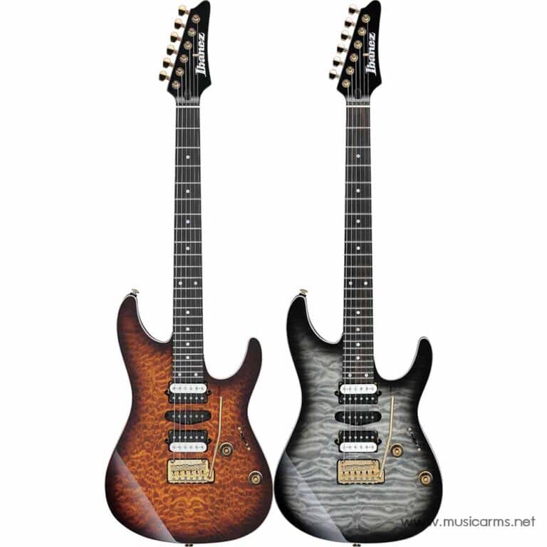 Ibanez AZ47P1QM กีตาร์งานดีๆซีรี่ส์ AZ ซึ่งรุ่นนี้จะเป็นงานผลิตไลน์ Premium บอดี้ไม้อเมริกันเบสวูดเสียงแน่นๆปะหน้าด้วยไม้ Quilted Maple ซึ่งมีลายไม้ที่สวยงาม คอเป็นไม้เมเปิลที่ผ่านการอบไล่ความชื้นในเนื้อไม้ เสียงนุ่มนวลโดยไม่ต้องรอไม้เก่า 24 เฟรตขนาด Jumbo เล่นได้ลื่นไหล จะตีคอร์ดก็ได้ โซโล่ก็เข้าลึกได้ง่าย ขุมพลังเสียงแบบ HSH ให้ปิ๊กอัพมา 3 แบบ เป็นรุ่น DiMarzio® Air Norton™ (H), DiMarzio® True Velvet™ (S) และ DiMarzio® The Tone Zone® (H) กับซีเลคเตอร์ 5 ทางที่เลือกซาวด์ได้หลากหลายและพุ่งแรงสะใจชาวร็อค บริดจ์ Gotoh สุดหรู งานประกอบยอดเยี่ยม ได้รุ่นนี้ไปตัวเดียวจบจะเพลงไหนก็เล่นได้ทั้งนั้น