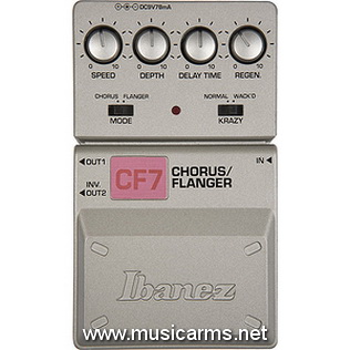 IBANEZ CF7 – เป็นเอฟเฟคกีต้าร์รุ่น โทนล๊อค สตรอมบ๊อค ที่มีความความหลากหลายของลูกเล่น สามารถเล่นเสียงวินเทจครอรัส หรือโมเดิร์นโมดูเรชั่น ด้วยเสียงที่ยอดเยี่ยมจากซาวด์สแคปไปสู่เจ็ตเพลนวูช รวมไปถึงปุ่ม เครซี่ ที่มีสองตัวเลือกคือ แบบปกติและ เว็คโหมด ด้านนอกประกอบกับโรตารี่พล๊อต set and forget และคน๊อบ