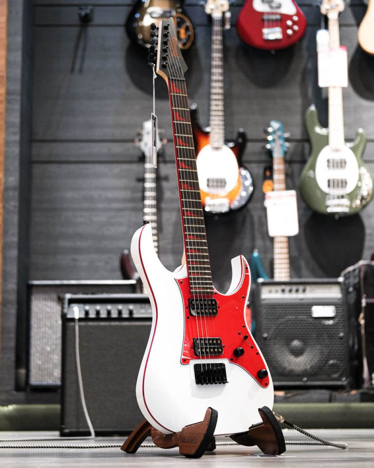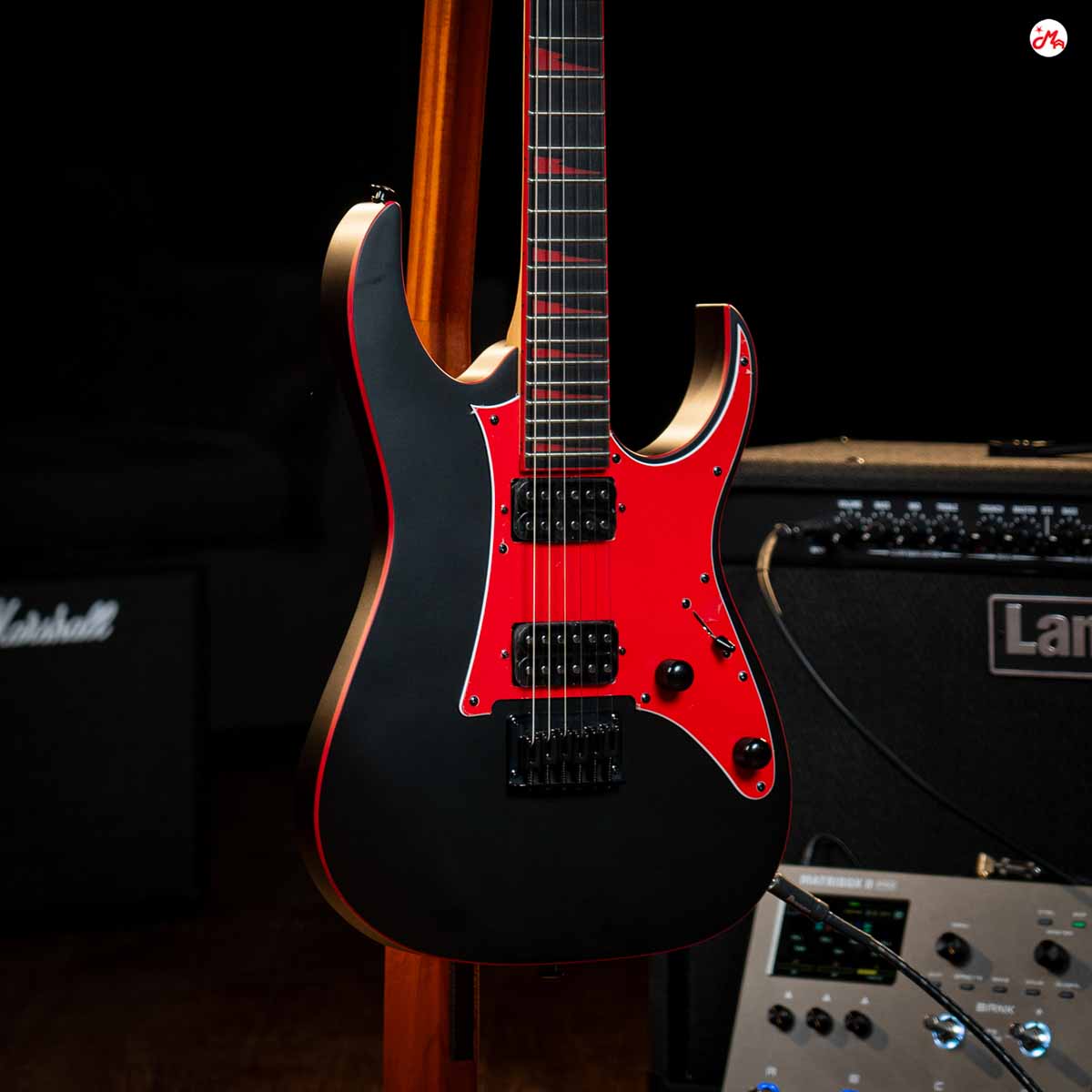 Ibanez GRG131DX กีต้าร์สุดเท่ในราคาย่อมเยา บอดี้ไม้ป็อปลาร์ เสียงเด้งชัด ออกโทนร็อคเอเชีย เคลือบคอแบบด้าน ช่วยให้เล่นง่ายและไม่ลื่นมือเวลาเหงื่อออก คอไม้เมเปิ้ล จุดเด่นคือฟิงเกอร์บอร์ดไม้นิวซีแลนด์ไพน์แปลกใหม่ รวมถึงอินเลย์ลายฟันฉลามสีแดง ตัดกับบอดี้สี Black Flat ได้อย่างดี ปิ๊กอัพเป็น Infinity R Humbucker ทั้งคู่ ซาวด์ร็อคแรงสะใจ 24 เฟรต ในแบบฉบับของ Ibanez และเป็นขนาดจัมโบ้เล่นง่าย ขาร็อคที่ต้องการกีต้าร์ราคาย่อมเยา บอกเลยไม่ควรพลาด