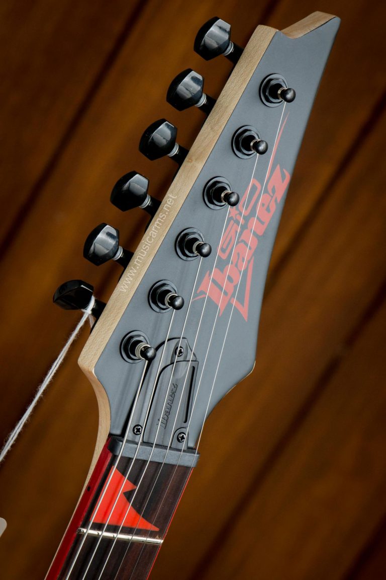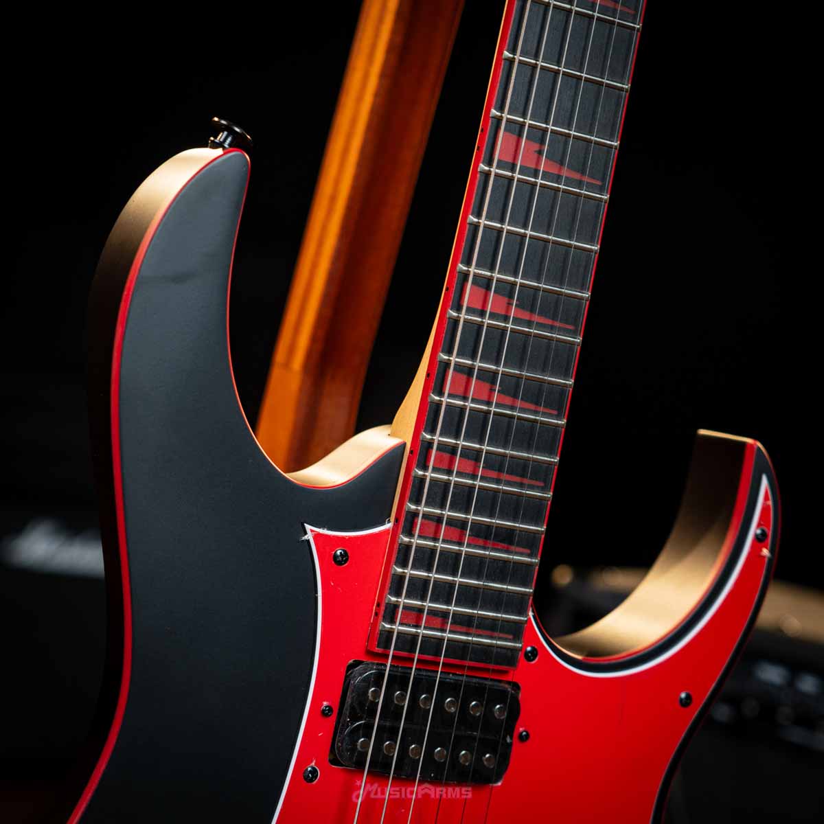 กีต้าร์สุดเท่ในราคาย่อมเยา บอดี้ไม้ป็อปลาร์ เสียงเด้งชัด ออกโทนร็อคเอเชีย เคลือบคอแบบด้าน ช่วยให้เล่นง่ายและไม่ลื่นมือเวลาเหงื่อออก คอไม้เมเปิ้ล จุดเด่นคือฟิงเกอร์บอร์ดไม้นิวซีแลนด์ไพน์แปลกใหม่ รวมถึงอินเลย์ลายฟันฉลามสีแดง ตัดกับบอดี้สี Black Flat ได้อย่างดี ปิ๊กอัพเป็น Infinity R Humbucker ทั้งคู่ ซาวด์ร็อคแรงสะใจ 24 เฟรต ในแบบฉบับของ Ibanez และเป็นขนาดจัมโบ้เล่นง่าย ขาร็อคที่ต้องการกีต้าร์ราคาย่อมเยา บอกเลยไม่ควรพลาด