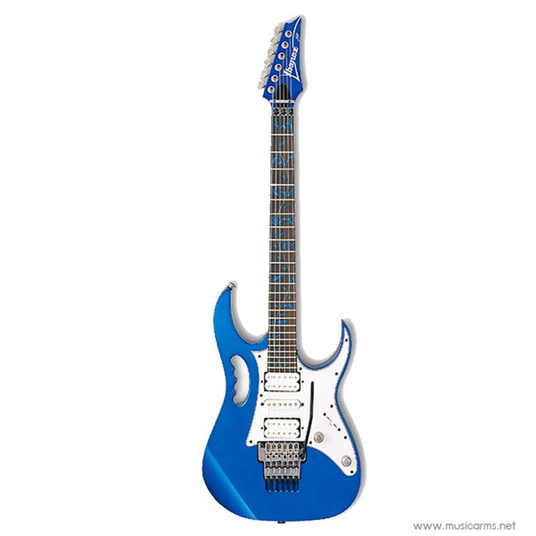 IBANEZ JEM7V – กีต้าร์ไฟฟ้า Ibanez JEM7V สี Sparkle Blue เป็นกีต้าร์ไฟฟ้าซีรีย์ JEM และ ซิงเนเจอร์ของมือกีต้าร์อเมริกัน Steve Vai ตัวบอดี้ทำจากไม้Alder และ ไม้Basswood ส่วนคอทำจากไม้เมเปิ้ล เฟรทบอร์ดไม้โรสวูด