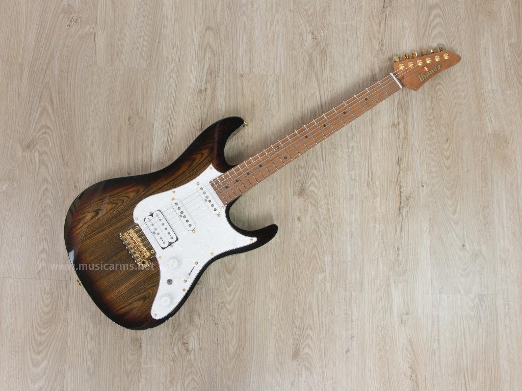 Ibanez Premium AZ224BCG กีต้าร์งานดีจากแบรนด์ดังที่ออกแบบมาได้สวยงามโดนใจ บอดี้นั้นเป็นไม้อเมริกันเบสวู้ดคัดสรรมาอย่างดี ปะหน้าด้วยไม้ Bocote เป็นไม้พันธุ์หายาก ให้เสียงเหมือนอินเดียนโรสวู้ด ดังนั้นซาวด์จึงออกมาหนา อบอุ่น ส่วนคอและฟิงเกอร์บอร์เป็นไม้เมเปิ้ลอบ ซาวด์หวานแบบไม้แห้ง มีความหลากหลายที่ปิ๊กอัพแบบ HSS จาก Seymour Duncan ทั้ง 3 ตำแหน่ง ซาวด์หนาบางเลือกได้ตามใจชอบ นอกจากนี้จะมีความพิเศษอีกอย่างที่จะมีสวิทช์ Alter มาให้ เป็นการปรับโหมดปิ๊กอัพผสมเสียงได้หลากหลาย งานดีเสียงเนี๊ยบแบบนี้ ไม่รักยังไงไหว