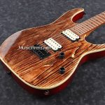 Ibanez RG421HPAM หากใครชื่นชอบลายไม้สวยๆของไม้แอช นี่คือกีต้าร์ในฝันที่จะพาคุณเต็มอิ่มไปกับเนื้อไม้ที่สวยงามและซาวด์อันดุดัน บอดี้เป็นไม้เอ็นยาโต้ ปะหน้าด้วยไม้แอชเผยลายไม้งดงาม และยังมีความพิเศษที่ส่วนคอและฟิงเกอร์บอรืดจะเป็นไม้เมเปิ้ลผ่านการอบอีกด้วย มีข้อดีคือสีจะสวยขึ้นรับกับบอดี้และได้เนื้องเสียงที่หวานใสมากขึ้น ปิ๊กอัพสองตำแหน่งเป็นรุ่น DiMarzio® Air Norton™ (H) และ DiMarzio® The Tone Zone® (H) ให้ซาวด์ร็อคดุๆ สาวก Ibanez ที่ชอบกีต้าร์ลายไม้ เป็นอีกรุ่นที่ยั่วยวนใจเหลือเกิน