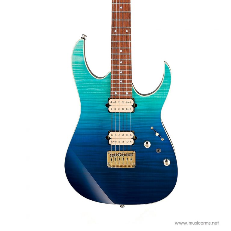 Ibanez RG421HPFM กีต้าร์ที่แค่เห็นก็ต้องหลงรักด้วยสี Blue Reef Gradation คล้ายสีน้ำทะเล ด้านหลังจะเป็นสีแดงตัดกันสวยงาม แถมรุ่นนี้ยังปะหน้ามาด้วยไม้เฟรมเมเปิ้ลโชว์ลายไม้สวยงามอีกด้วย โดยตัวบอดี้จะเป็นไม้เอ็นยาโต้ คอไม้เมเปิ้ลฟิงเกอร์จาโตบา เสียงมีความกลมกลืน ปิ๊กอัพให้มาสองตำแหน่งเป็นของ DiMarzio® โดยจะเป็นรุ่น Air Norton และ The Tone Zone เสียงดุในแบบร็อค แต่หากใครชอบซาวด์บางก็มีสวิทช์ตัดคอยล์เป็นตัวเลือกอีกด้วย งานเก็บรายละเอียดได้ดีทุกจุด บอกเลยแค่เห็นก็อยากลองแล้ว