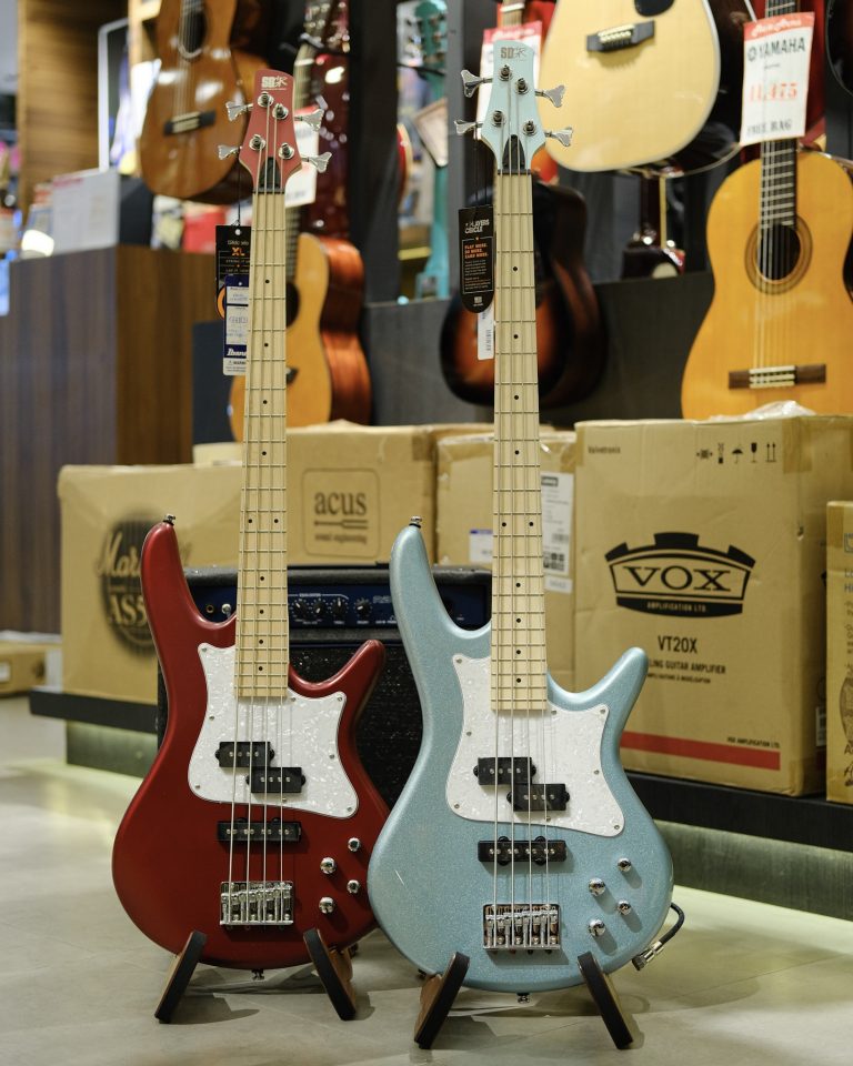 Ibanez SRMD200 เบสดีไซด์เฉียบๆสายพันธุ์ใหม่จาก Ibanez คอนเซ็ปต์ของรุ่นนี้คือความเป็นโมเดิร์น ดังนั้นเรื่องซาวด์จะออกแนวเด้งๆแบบสมัยใหม่มากกว่า บอดี้เป็นไม้ป็อปลาร์เสียงกลางดี น้ำหนักเบา คอไม้เมเปิ้ลเช่นเดียวกับฟิงเกอร์บอร์ด เดินเบสได้ชัดเป็นลูกปิ๊กอัพให้มาสองแบบคือ Dynamix P และ Dynamix P เป็นแบบแนวพริซิชั่นเบสกับแจ๊สเบสให้เลือก ถ้ายังไม่ชอบใจก็ยังมีสวิทช์บูสต์/ตัด Treble และ Bass จะเป็นปุ่มที่ช่วยเพิ่มหรือตัดเสียงแหลมและเสียงเบสได้ตามต้องการ งานดีราคาเบาๆ รับรองว่าคุ้ม