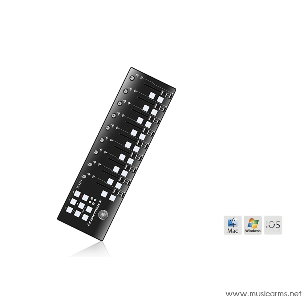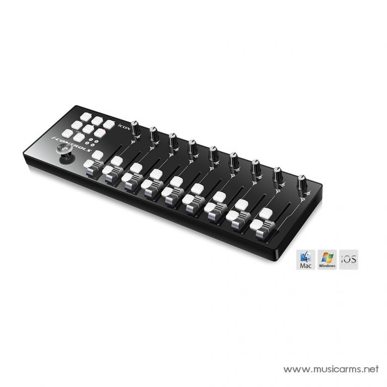 iCon i-Controls Midi Controller แบบ 9 Faders ที่สามารถใช้ควบคุม Play, Stop, Record, Mute กับโปรแกรมทำเพลงต่างๆ เช่น Logic Pro X, Cubase และอื่นๆอีกมากมาย โดยจะมีเฟดเดอร์ที่กำหนดได้ 9 แบบพร้อมปุ่มกำหนดได้ 18 ปุ่ม และปุ่ม “Scene” สำหรับปรับแต่งฉาก 4 ฉากเพื่อควบคุมแอพพลิเคชั่นหลายตัวได้ทันที รวมถึง 6 ปุ่ม transport สามารถใช้งานได้กับ Windows XP, Vista (32 บิต), Windows 7 (32 บิต/64 บิต), Windows 8 (32 บิต/64 บิต), Windows 10 (32 บิต & 64 บิต) และ Mac OS X
