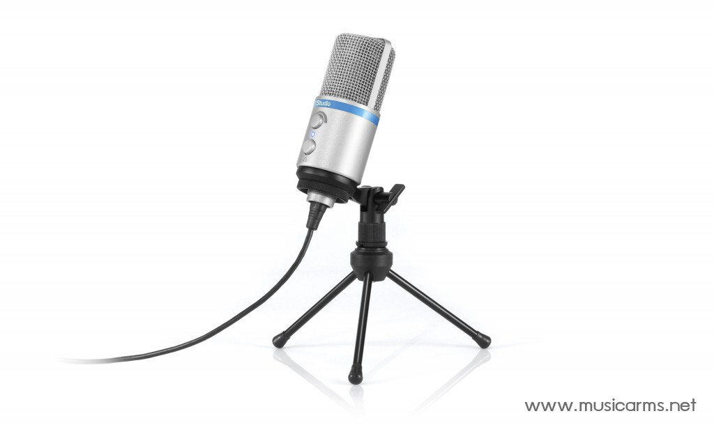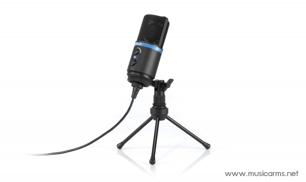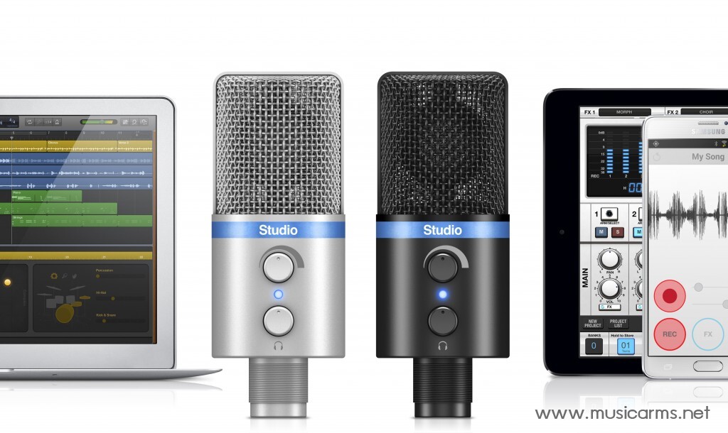 - To ensure you’ll always record at your best, iRig Mic Studio comes with a full set of flexible controls: It has a gain control knob and a multicolor LED level indicator. It also includes a headphone output with its own level control for onboard monitoring directly from iRig Mic Studio itself. And, for better positioning while recording, iRig Mic Studio comes with a sturdy and portable tabletop tripod stand.