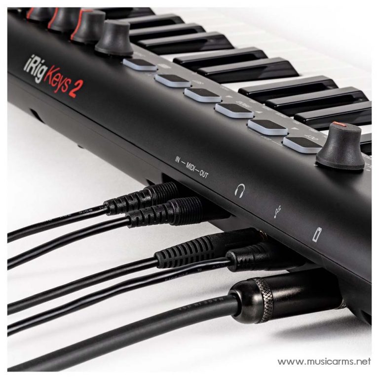 IK Multimedia iRig Keys 2 คีย์บอร์ดคอนโทรลเลอร์ MIDI อเนกประสงค์แบบบางพิเศษและพกพาสะดวกสำหรับ iPhone, iPod touch, iPad และ Mac/PC เชื่อมต่อโดยตรงกับ iOS หรือพอร์ต USB บน Mac/PC ของคุณ มีมินิคีย์ที่ไวต่อความเร็ว 37 ปุ่ม ซึ่งเป็นช่วง 3 อ็อกเทฟเต็มรูปแบบพร้อมโน้ตหนึ่งตัว หมายความว่าคุณมีคีย์ที่หลากหลายสำหรับเล่น แม้ว่าจะมีคีย์มากมาย แต่ iRig Keys 2 ก็ใช้พื้นที่บนเดสก์ท็อปของคุณน้อยที่สุด และสามารถใส่ในกระเป๋าเป้หรือกระเป๋าถือขึ้นเครื่องได้อย่างง่ายดาย