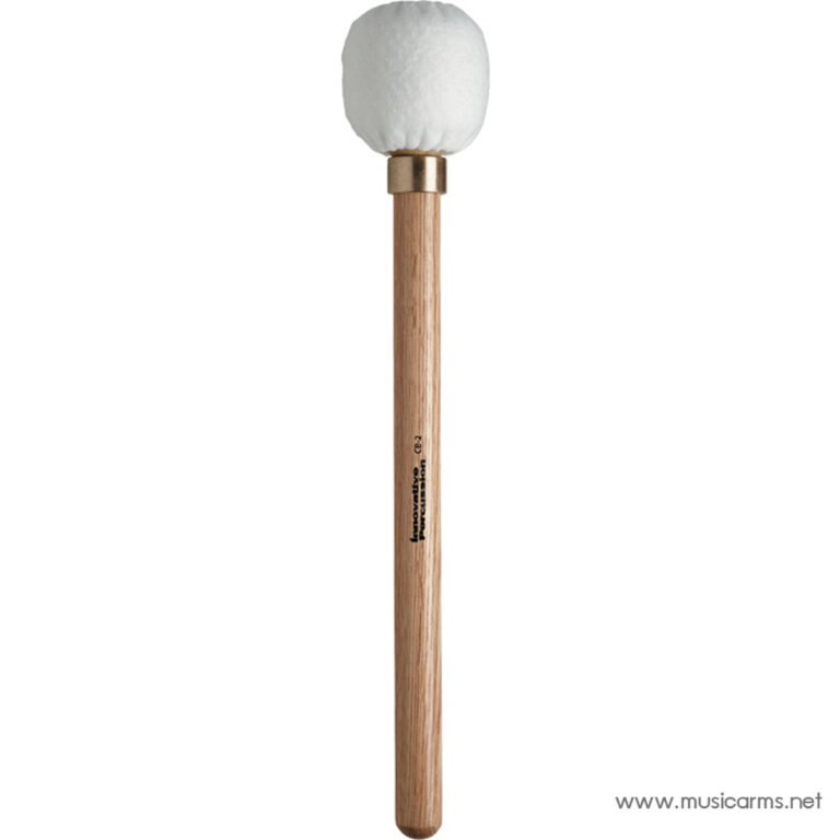 The Innovative Percussion Concert Series CB-2 Soft Bass Drum Mallet features a large 1″red oak handle, solid wood core with a thick synthetic felt liner and cover, and a brass ring for added weight, resulting in a full dark tone quality.