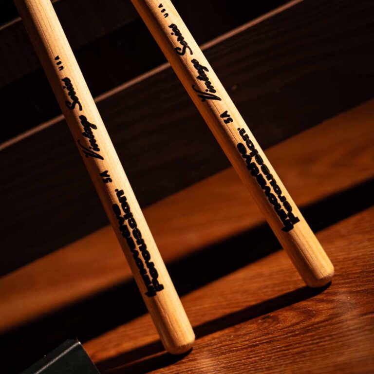 The Vintage Series is a mainstay of the Innovative Percussion product line. It all starts with prime white hickory selected for straight grain, strength, and weight. Next, the sticks get lathed down to their final size, with a 16.125-inch length, a medium taper, and old-school, acorn-style tips. Finally, they’re lightly lacquered for a secure grip and extra durability to get you through any gig. At Sweetwater, we’ve found that these sticks create a pleasing, well-rounded sound with excellent articulation around the kit. This model, the IP-5A, is a pair of 5A wood tip drumsticks. As the most common stick size, 5As work well across a range of genres and styles.