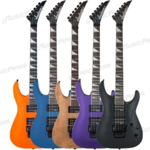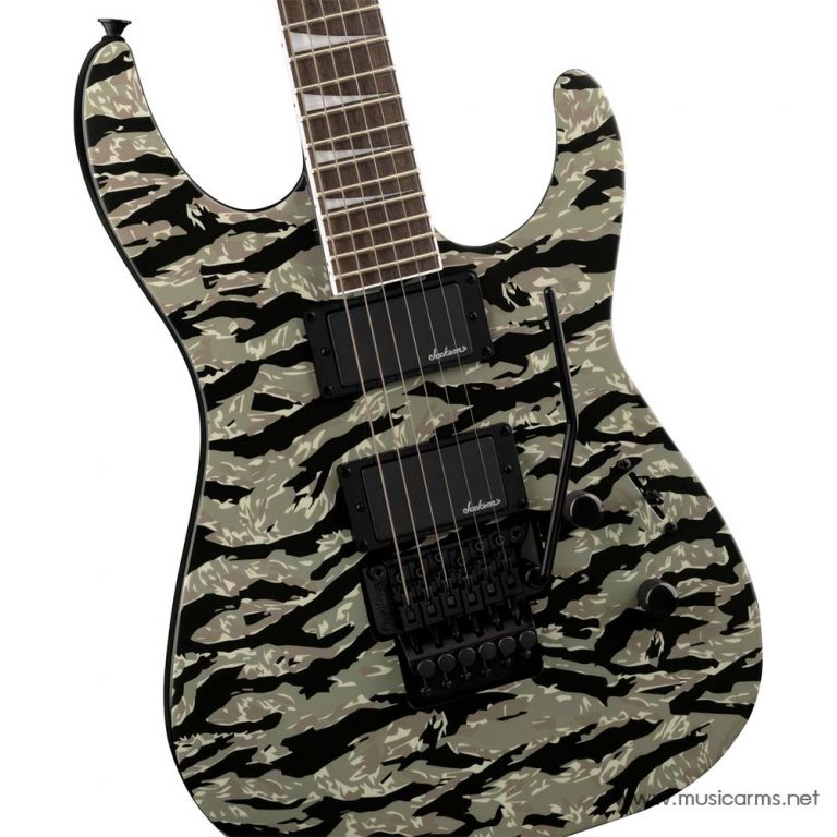 - Available in Tiger Jungle Camo with matching Jackson pointed 6-in-line headstock and black hardware