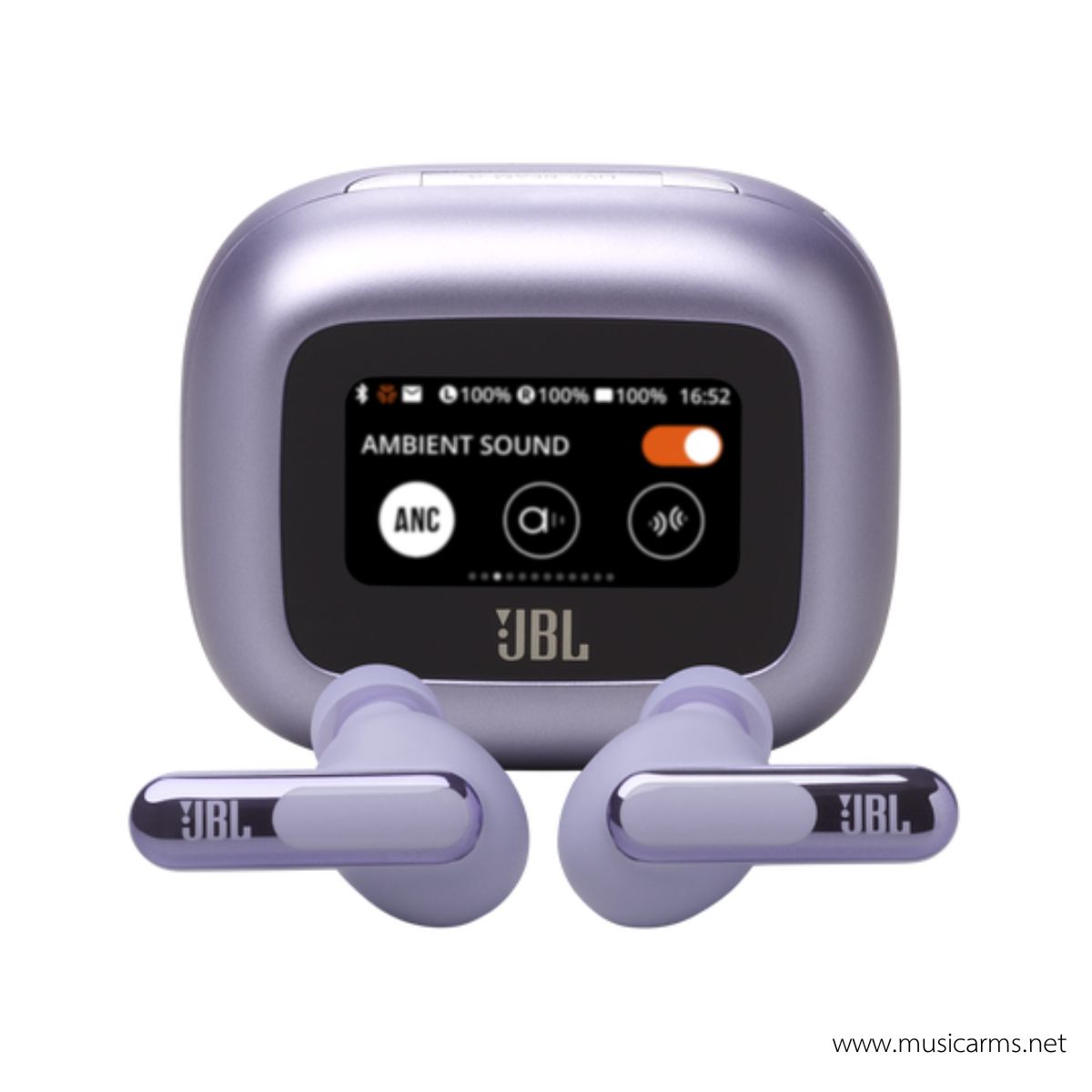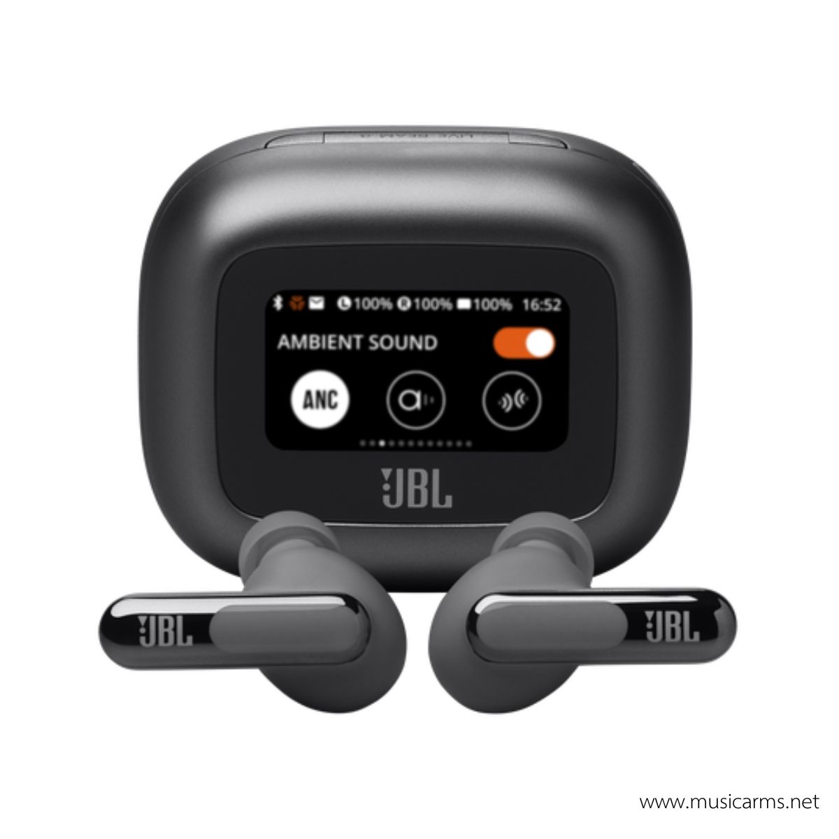 The JBL Live Beam 3 are closed-stick wireless earbuds that feature the Smart Charging Case™ , a charging case with a 1.45-inch touchscreen that allows you to control various settings of the headphones without having to open the app on your smartphone.