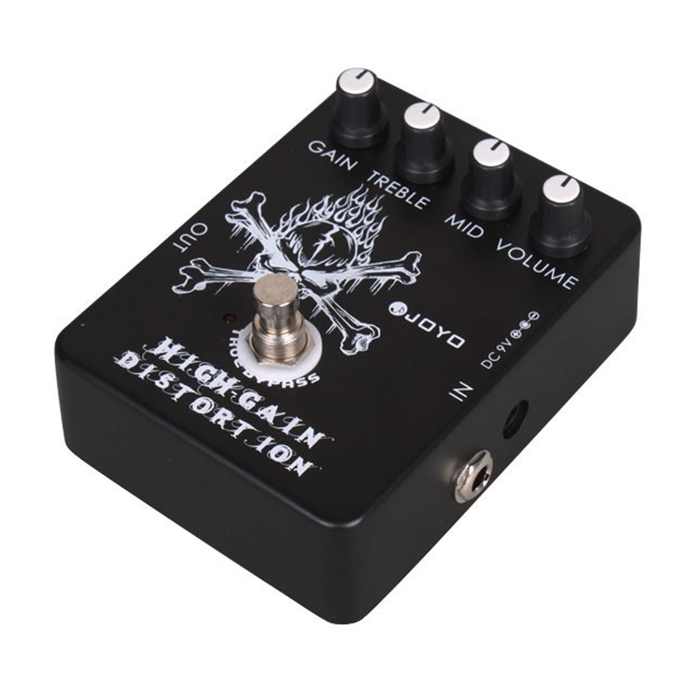 Quality components include the input and output jacks, a bright LED, and a 9V battery (included); but more importantly, the High Gain Distortion pedal from JOYO features the dual band EQ, made up of Treble and Mid Controls.