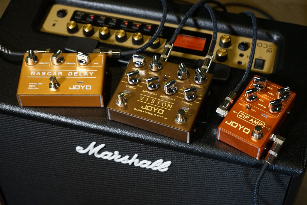The R Series, or Revolution series from JOYO are the 4th generation of guitar effects and all feature some very cool ambient LED lighting. The lights can be toggled from a switch on the rear of the pedal..3 modes of lighting are available to adjust when they come on.