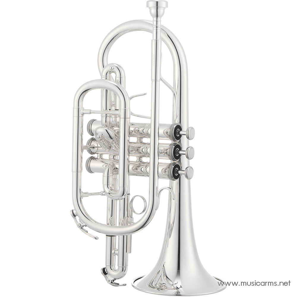 The Jupiter JCR700 Bb Cornet is the ideal instrument for beginning students or those wishing to join a community brass band. It comes standard with a shepard’s crook, medium large bore, stainless steel pistons, and a 1st valve slide saddle.