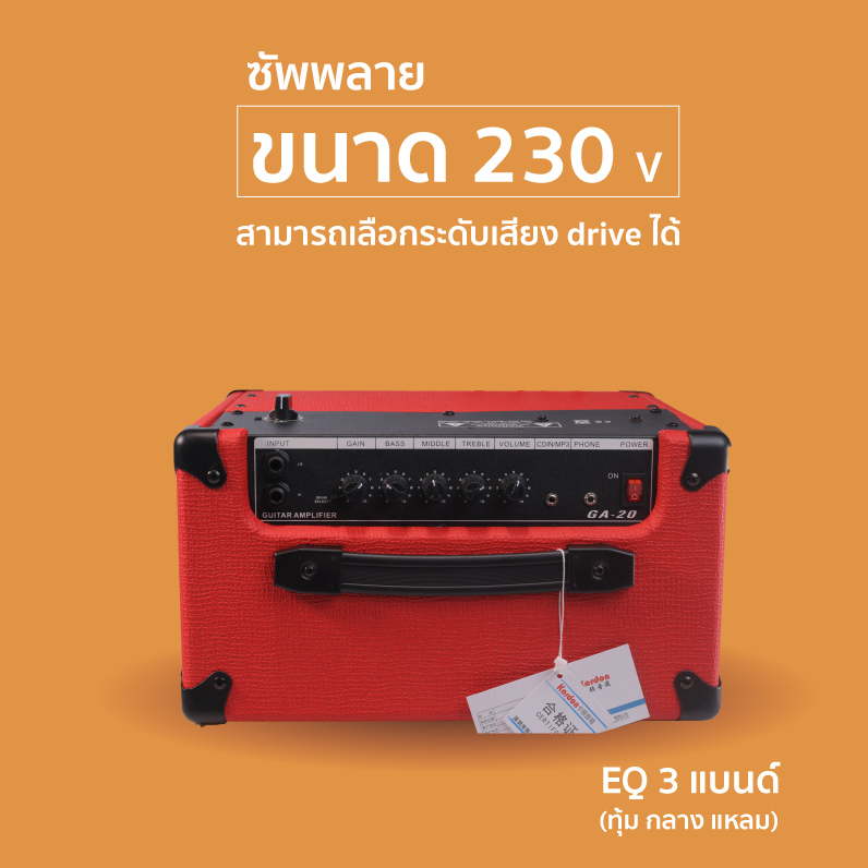 - แอมป์ไฟฟ้า ขนาด 20 วัต เสียงมารตฐาน สะดวกสบาย มีฟังชั่นบลูทูธ คุ้มค่าราคา โดย MA-รีวิวทีมKardon GA20 BT แอมป์กำลังขับขนาดซ้อมมือ 20 วัตต์ โดยมีจุดเด่นที่สามารถเชื่อมต่อ Bluetooth ได้ ใช้เป็น Backing Track ซ้อมกันชิลล์ๆ หรือจะเลือกเชื่อมต่อแบบ MP3 ก็ทำได้ ช่วยให้การซ้อมกีต้าร์ไม่จำเจ ปรับ EQ ได้ครบ 3 ย่านเสียง ทุ้ม กลาง แหลม รวมถึงมีเอฟเฟค Overdrive ในตัวซึ่งเลือกระดับเสียงแตกได้ตามความต้องการากปุ่มคอนโทรลหน้าตู้ สามารถเชื่อมต่อหูฟังซ้อมส่วนตัวได้ งานดีราคาเบาๆแบบนี้มือกีต้าร์ชอบ