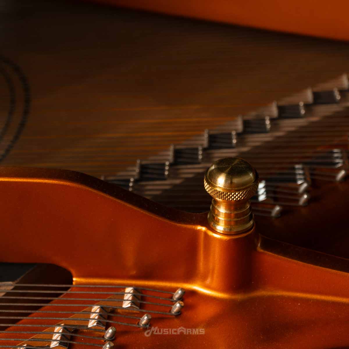 โครงสร้าง SOLID สร้างรากฐานที่แข็งแกร่งเป็นพิเศษเพื่อรองรับแรงตึงของเอ็น ขั้นแรก โดยติดตั้งพินบล็อกเข้ากับเพลต จากนั้น พินบล็อกและ Stretcher bar จะรวมเข้าเป็นโครงสร้างเดียวกัน และยึดเข้าด้วยกันอย่างแน่นหนา ความหนาที่เป็นพิเศษของ Stretcher bar แสดงให้เห็นถึงความแข็งแกร่งของโครงสร้างที่ทนทานนี้ ซึ่งได้รับการออกแบบมาเพื่อรองรับการปรับจูนที่เสถียร และโทนเสียงอันทรงพลัง